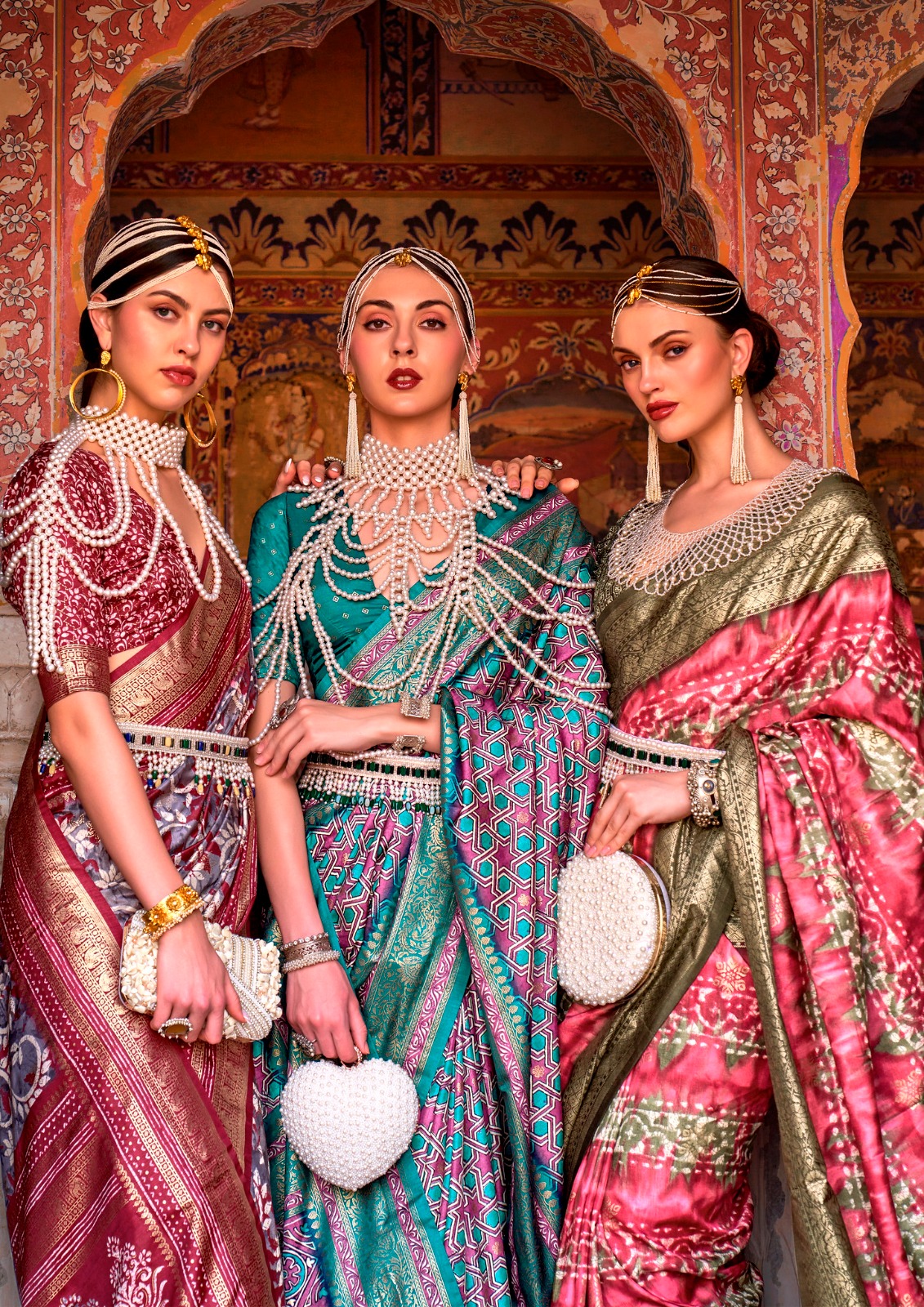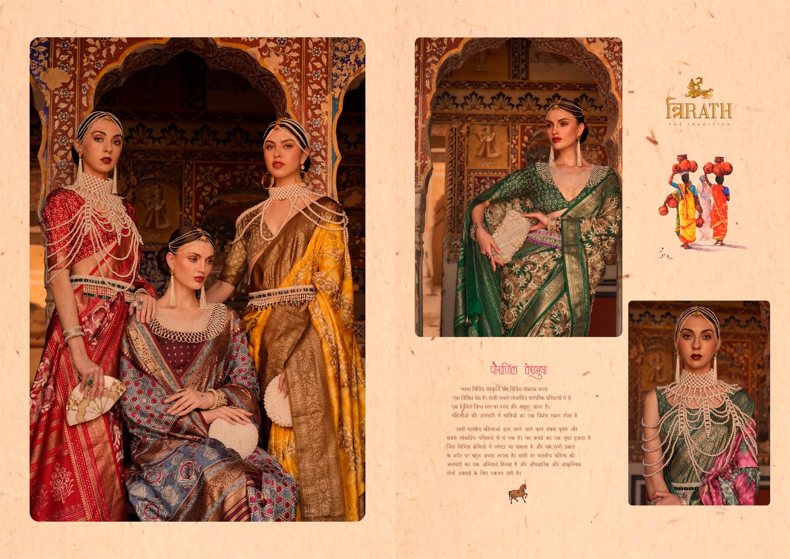 Brand : Trirath Catalogue Name:- Viraasat Series : 10043 To 10054 Fabric Details:- Mercerized Sigma Silk With Unique Patola Design And Elegant Gold Print With Gold Printed Waist (Kandora) Belt Rate:-875/- +5%Gst Other Description :Three Design Four Matching Each Occasion : Party Wear, Casual Wear Single available 100+ SINGLE |