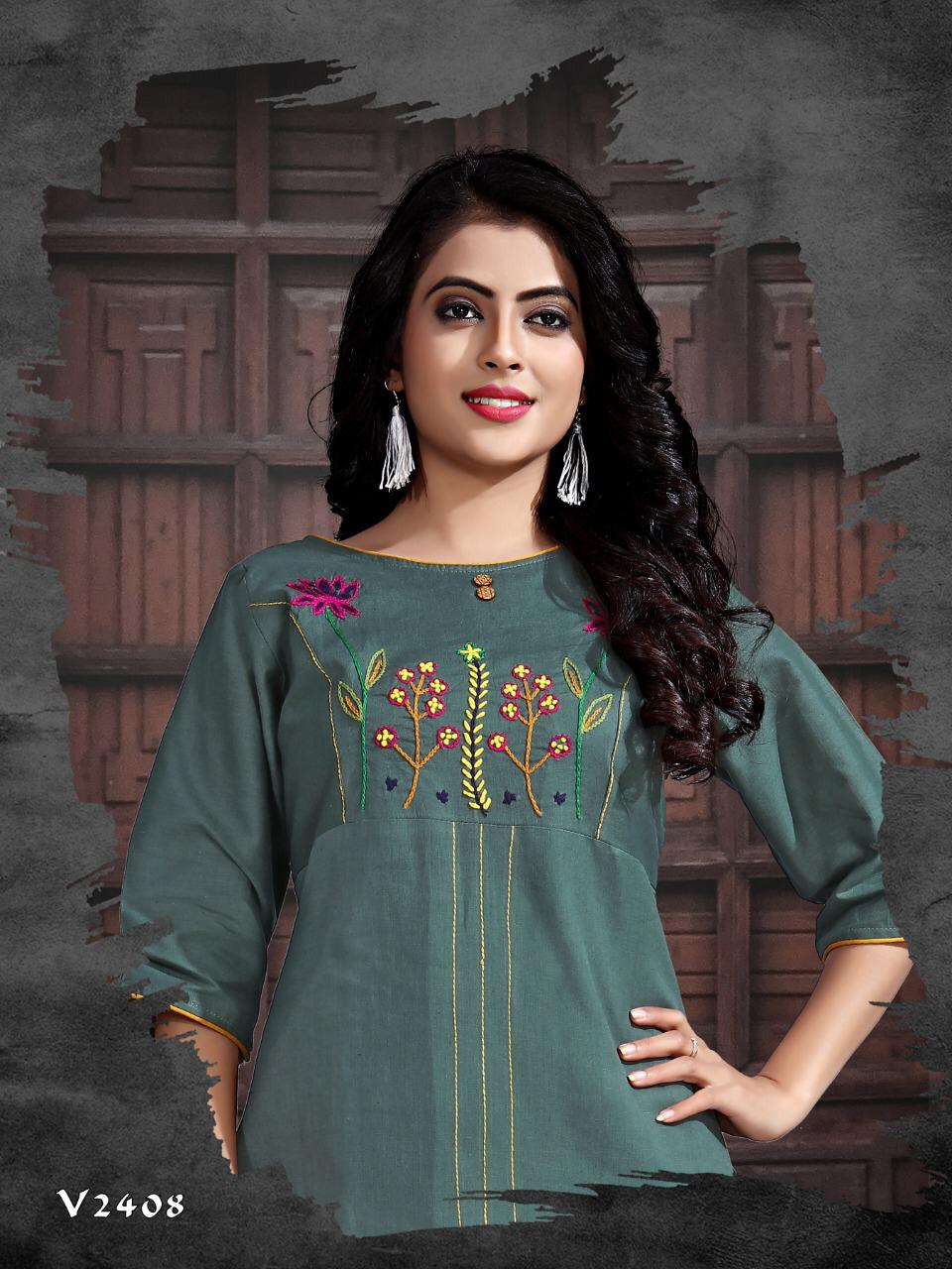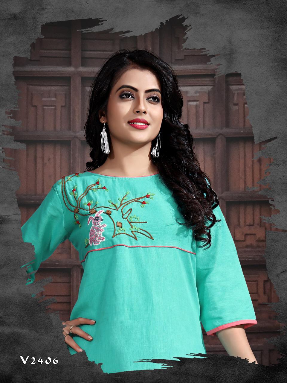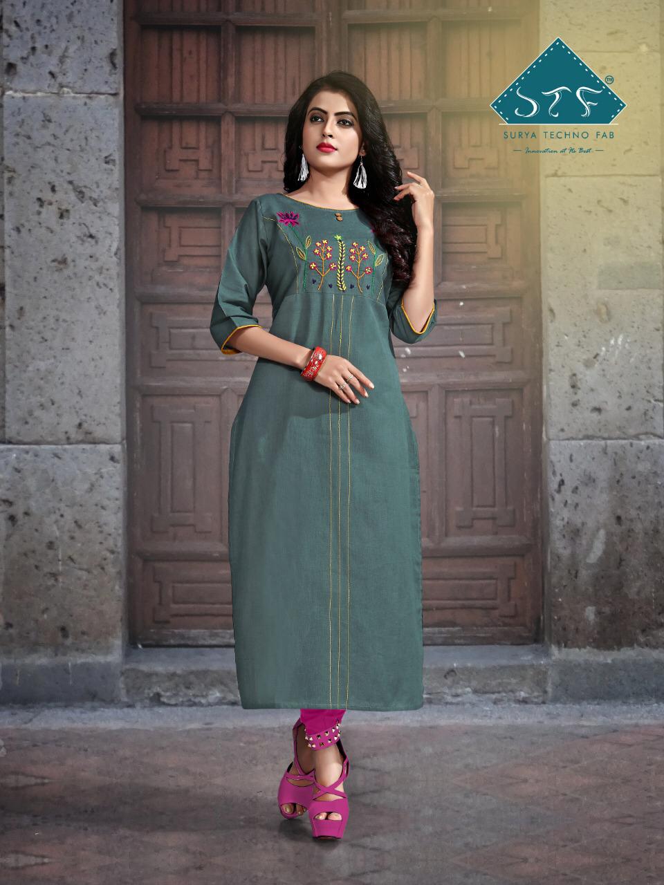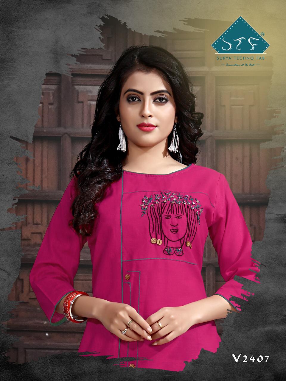 STF - Kurtis Catalogue :- Vistara (Vol :- 24) (With Handwork) Fabric :- 100% Cotton Flex Length :- 45 Inches Design :- 8 Bag :- 8 pcs of one size in a Fancy Bag Sizes :- M - 38, L - 40, XL - 42, 3XL - 46 Set to set Price :- 499 plus 5% GST Delivery starts |