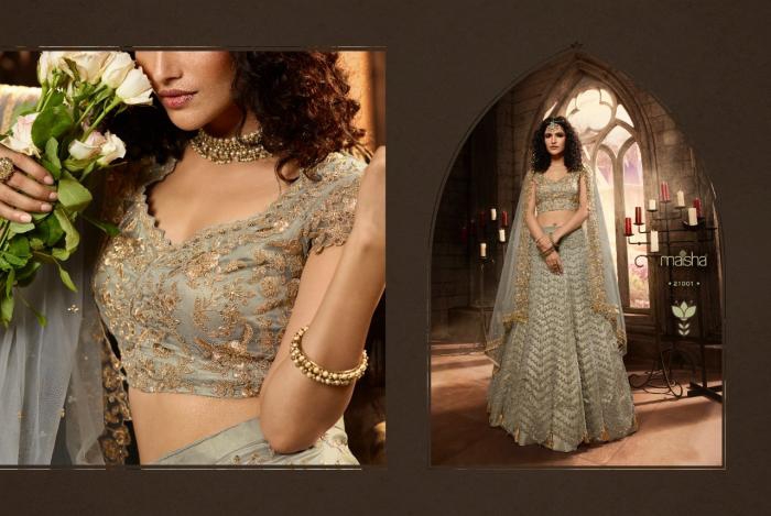 Buy Online Vivaana Vol 2 By Maisha Maskeen Series 21001 To 21005 Designer Wedding Wear Lehngas Set And Single Wholesale Supplier Gujarat 5 Pcs of Full Catalogue at Wholesale Price. Looking for Vivaana Vol 2 By Maisha Maskeen Series 21001 To 21005 Designer Wedding Wear Lehngas Set And Single Wholesale Supplier Gujarat Full Catalouge at Best Price? Buy Now Vivaana Vol 2 By Maisha Maskeen Series 21001 To 21005 Designer Wedding Wear Lehngas Set And Single Wholesale Supplier Gujarat at Wholesale Rate of Rs 25475 with Total 5 Pcs from authroized dealer and supplier of MAISHA Brand. Cost of Each piece is just only Rs 5095 which is very low and affordable price to resale the product in your retail store ,This is Surat based Wholesale Supplier & Dealer of MAISHA Brand. Click on Brand name to Know more about MAISHA Brand's products.Call or Whatsapp on 9898838984 for booking or enquiry