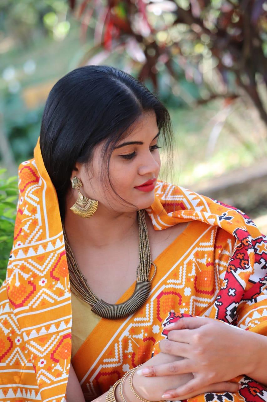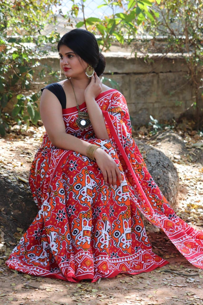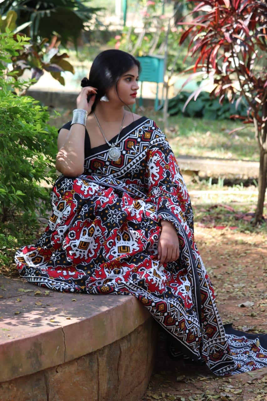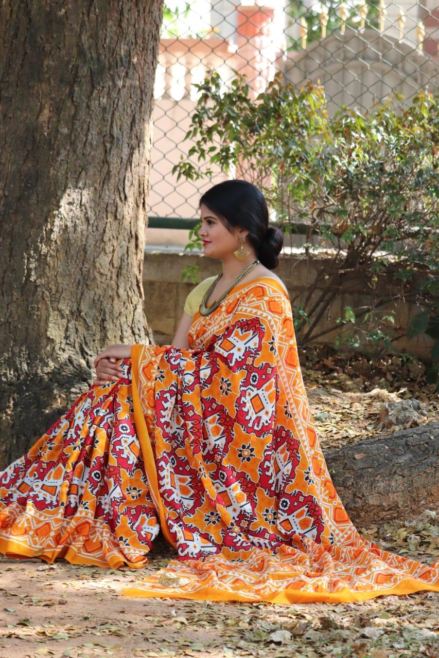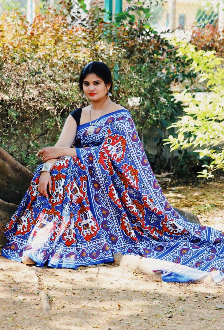 ? *Vivo nand* ? *Beautiful Handloom Linen Chanderi Sarees With Patola beautiful Prints Along WiTh Running Blouse* Full set Price @ *595* Single price 695+ gst * be aware of copy products* *|| Bulk stock || || Ready stock ||* |