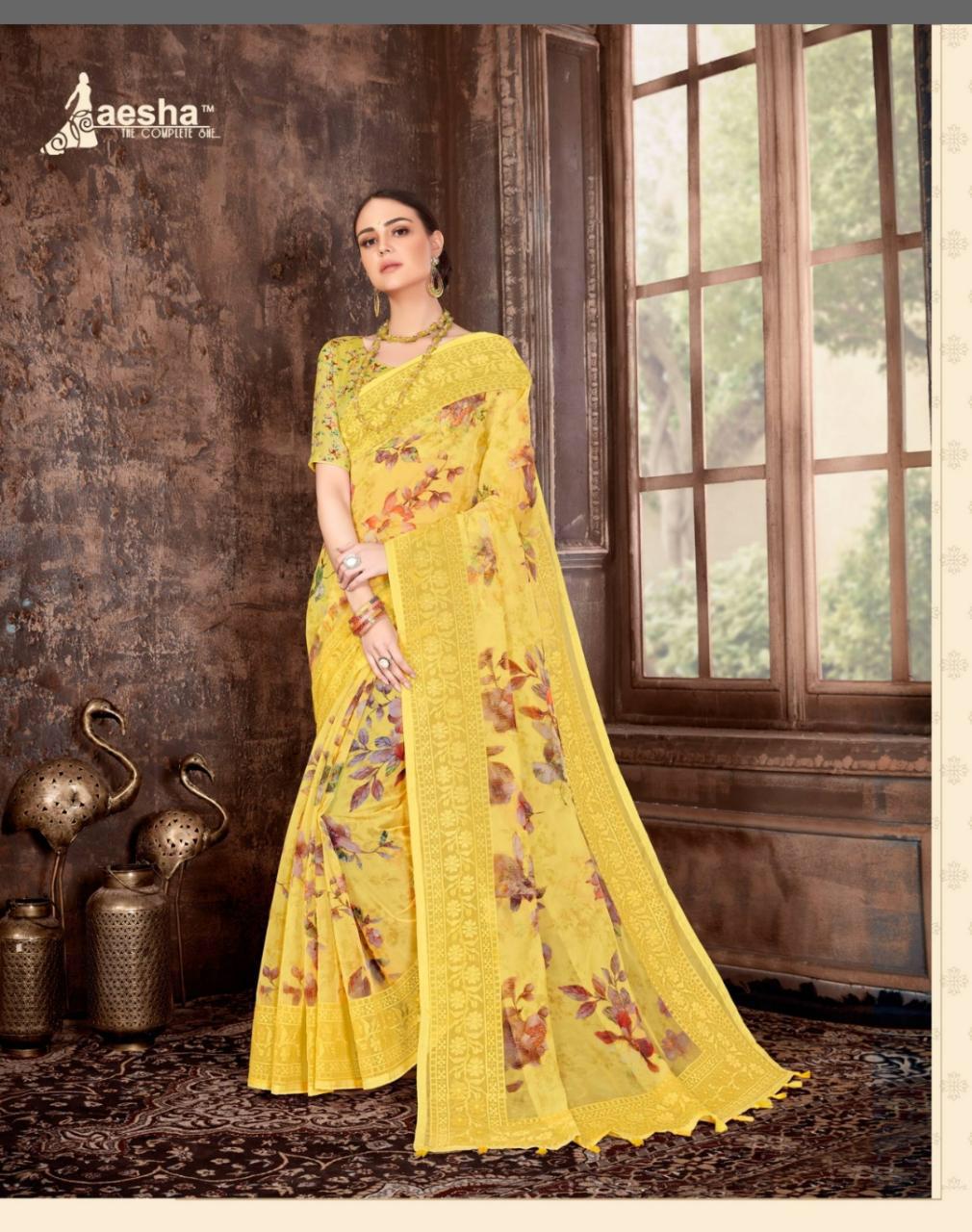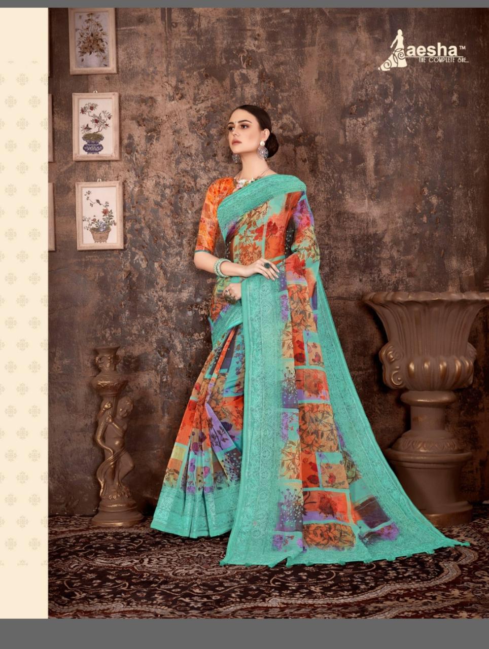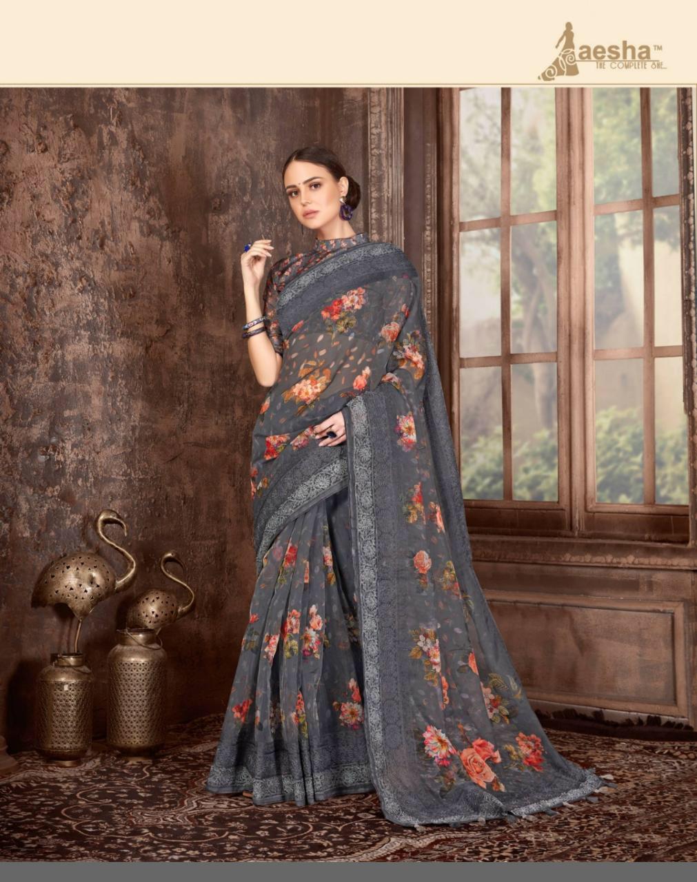 Brand - Aayesha. Type - Saree. New catlouge VRISA orgenja digital with exclusive embodary work O8 pc. Catlouge Aesha deginer Rate 1595/- Set to set. GST 5 Percent Extra. Delivery from tomorrow |