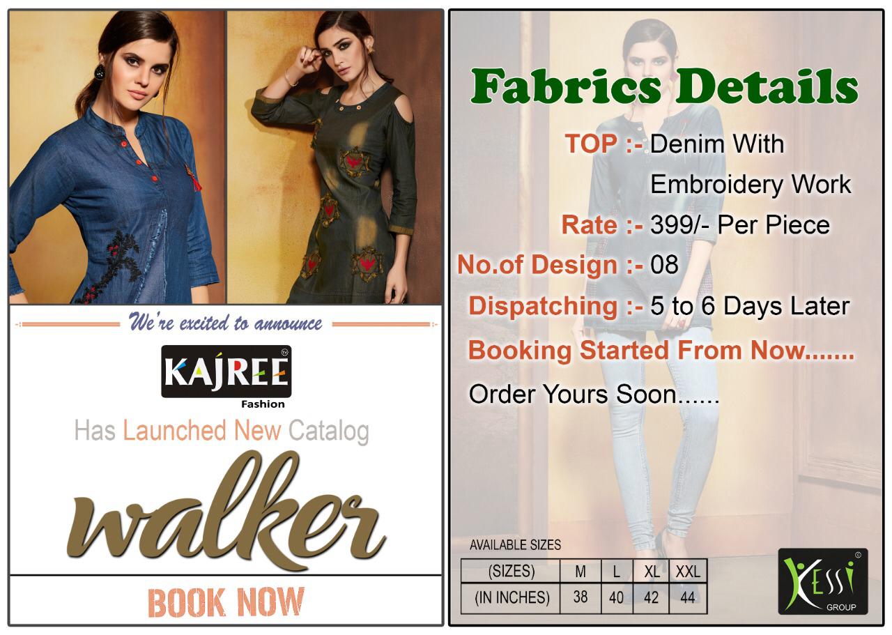 Buy Online Walker By Kajree 831 Series Fancy Denim Printed Kurti Collection Wholesaler Surat 8 Pcs of Full Catalogue at Wholesale Price. Looking for Walker By Kajree 831 Series Fancy Denim Printed Kurti Collection Wholesaler Surat Full Catalouge at Best Price? Buy Now Walker By Kajree 831 Series Fancy Denim Printed Kurti Collection Wholesaler Surat at Wholesale Rate of Rs 3192 with Total 8 Pcs from authroized dealer and supplier of KESSI Brand. Cost of Each piece is just only Rs 399 which is very low and affordable price to resale the product in your retail store ,This is Surat based Wholesale Supplier & Dealer of KESSI Brand. Click on Brand name to Know more about KESSI Brand's products.Call or Whatsapp on 9898838984 for booking or enquiry