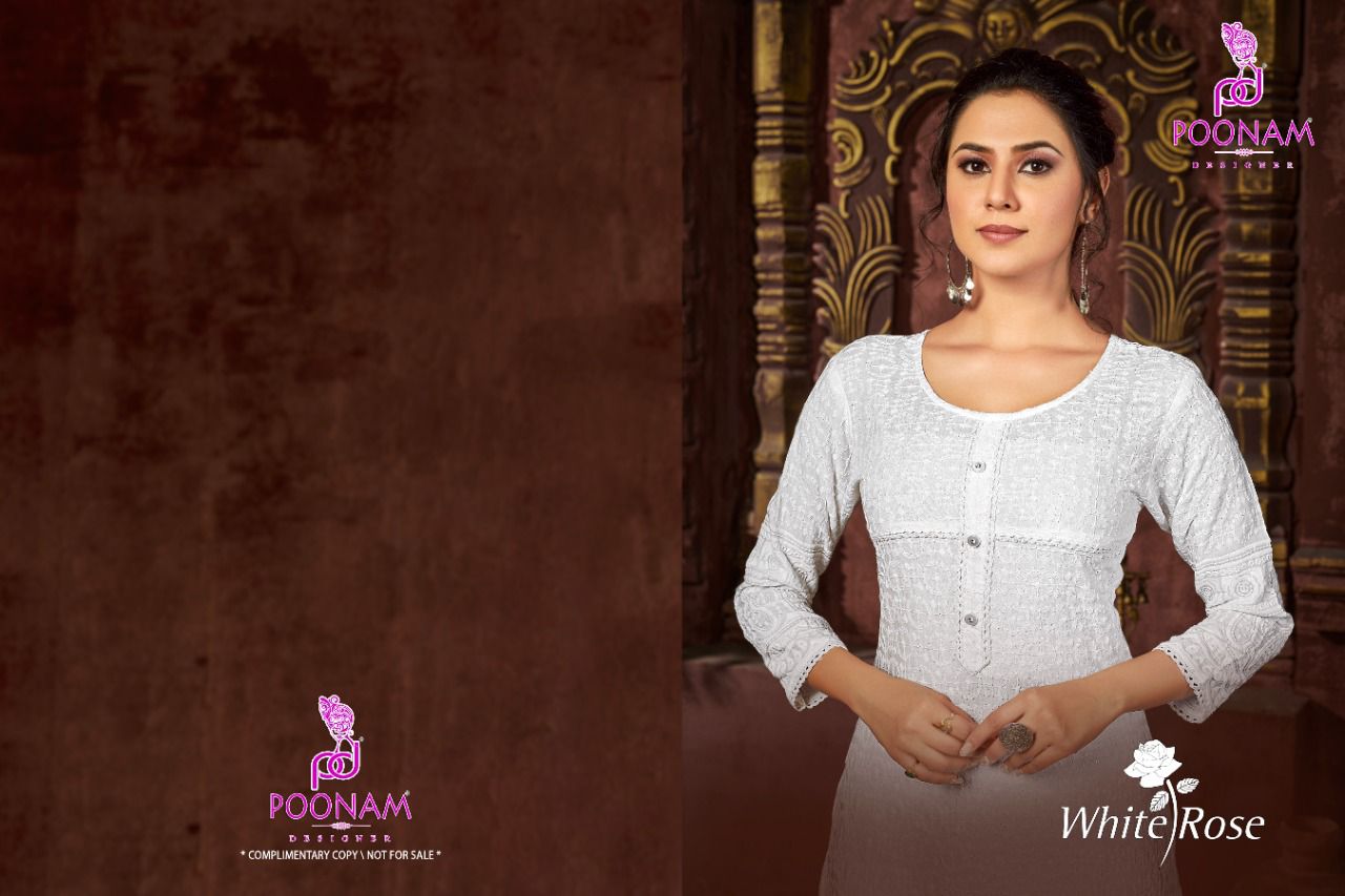 Poonam Designer®??? (Smit creation) New Catlog ?? � *White Rose *� Top (kurti)? - Pure Rayon Front/Back Chikan work With sequence. Length = 46� Size :- M,L,XL,XXL. Dispach - Saturday ? 599/- per pcs . Set to set. Pre Booking open |