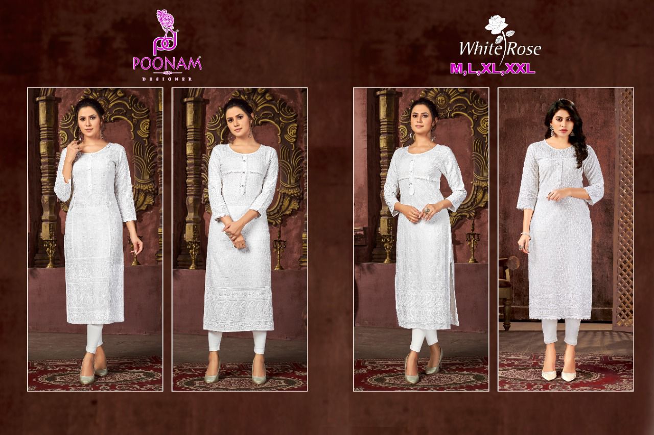 Buy Online White Rose By Poonam Designer Manufacturer Traders And Dealer From India 4 Pcs of Full Catalogue at Wholesale Price. Looking for White Rose By Poonam Designer Manufacturer Traders And Dealer From India Full Catalouge at Best Price? Buy Now White Rose By Poonam Designer Manufacturer Traders And Dealer From India at Wholesale Rate of Rs 2396 with Total 4 Pcs from authroized dealer and supplier of Poonam designer Brand. Cost of Each piece is just only Rs 599 which is very low and affordable price to resale the product in your retail store ,This is Surat based Wholesale Supplier & Dealer of Poonam designer Brand. Click on Brand name to Know more about Poonam designer Brand's products.Call or Whatsapp on 9898838984 for booking or enquiry