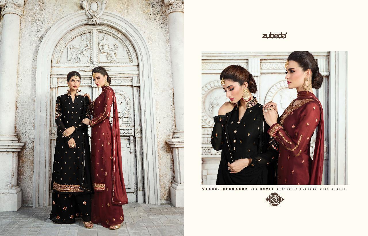 *ZUBEDA* Presents.. *YASHASVI* Top-Pure satin georget with heavy embroidery top Bot-Georget with heavy embroidery work Inner-Santoon Dup-chiffon *1695?* 5%Gst Applicable Set to set Delivery 2-3 days |