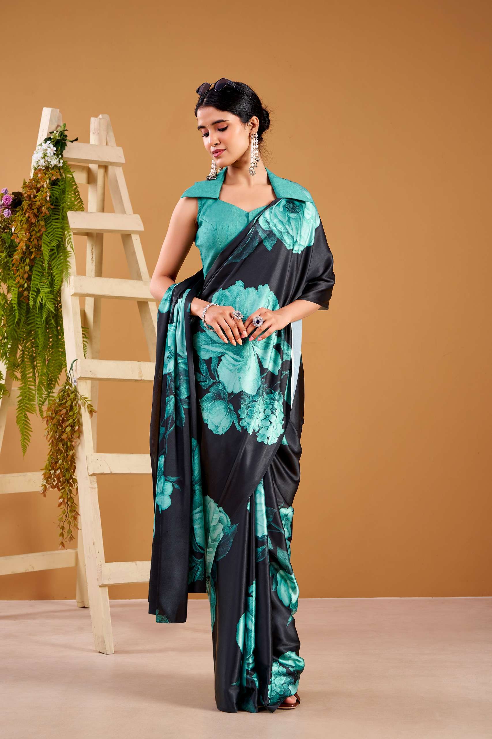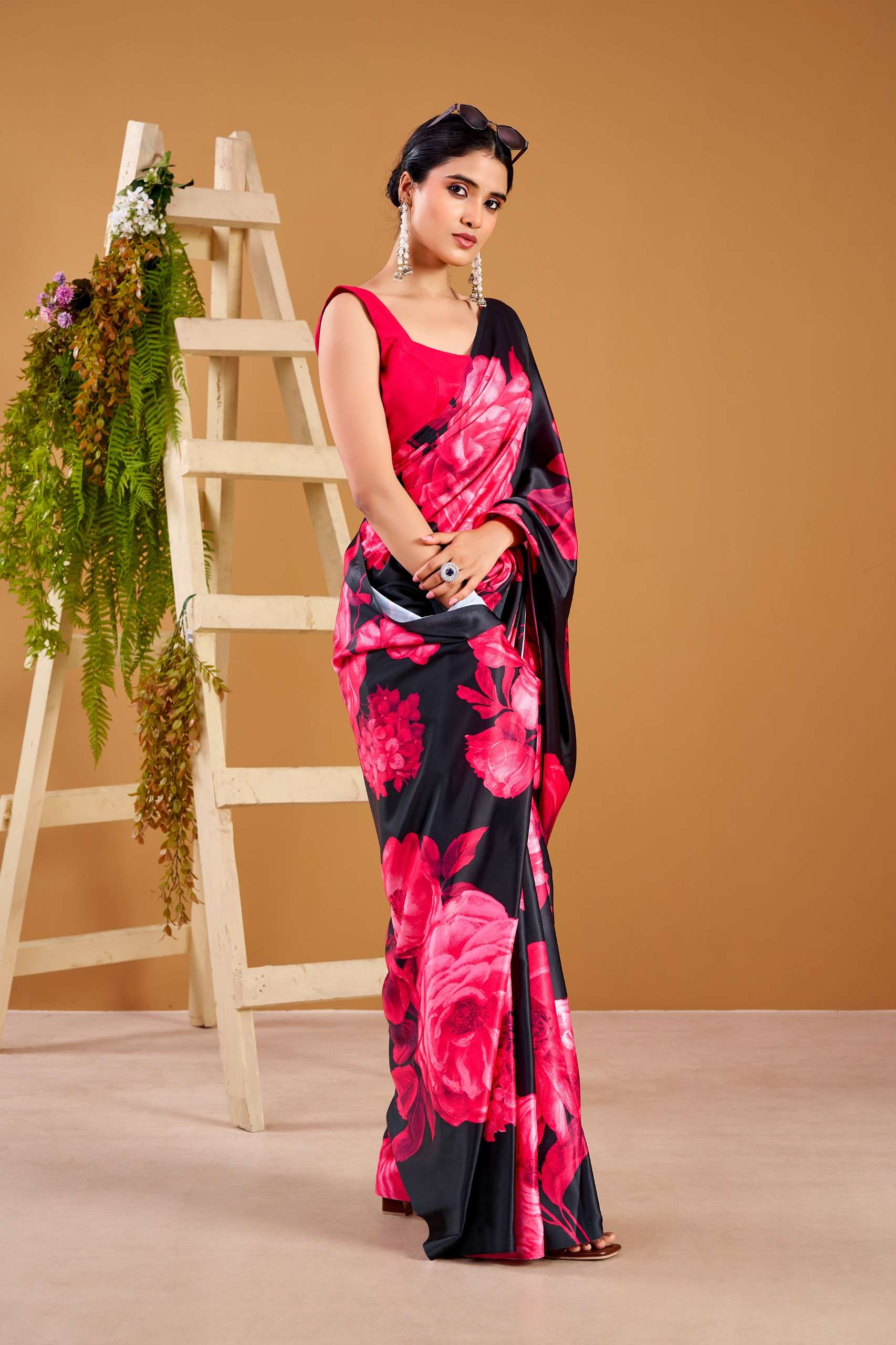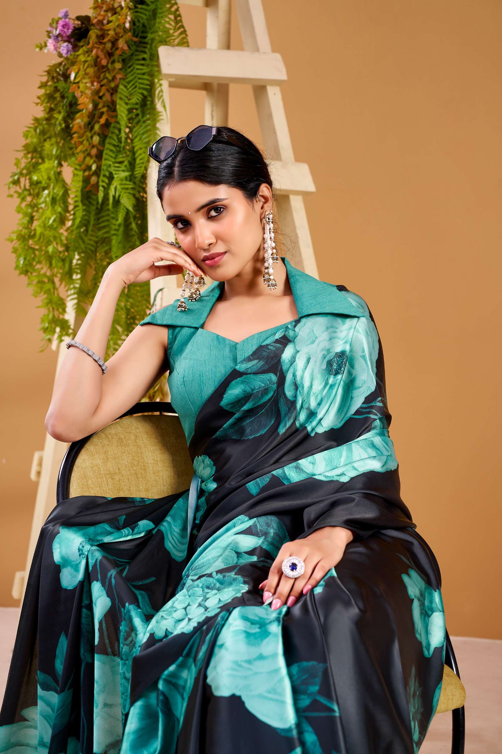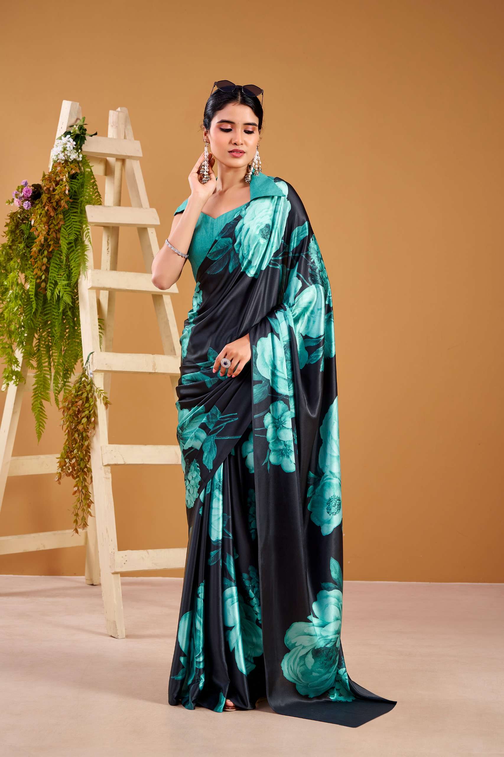 *Saree* Saree Fabric : Satin Silk Saree Work : Floral Print Saree Length : 5.5 meter