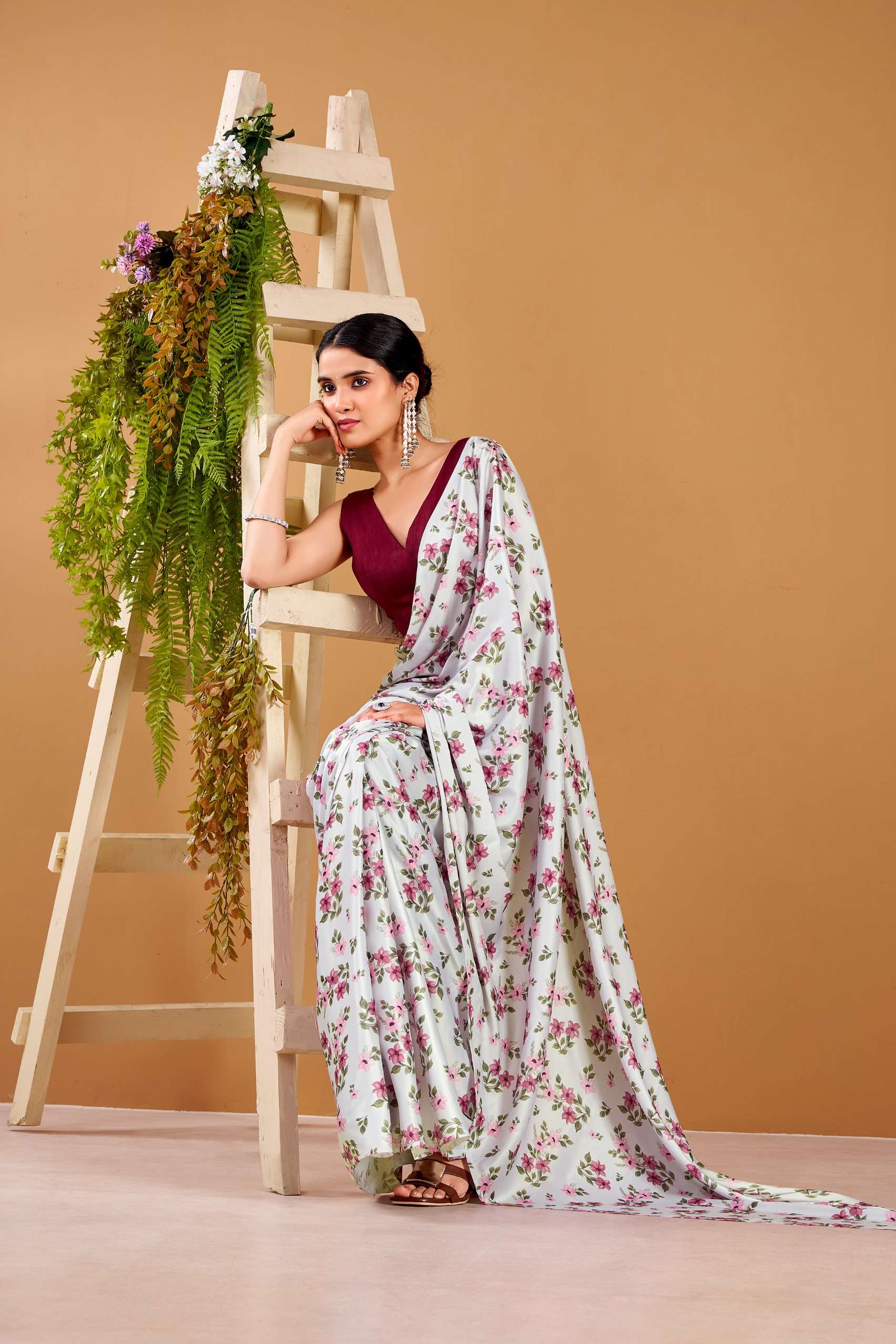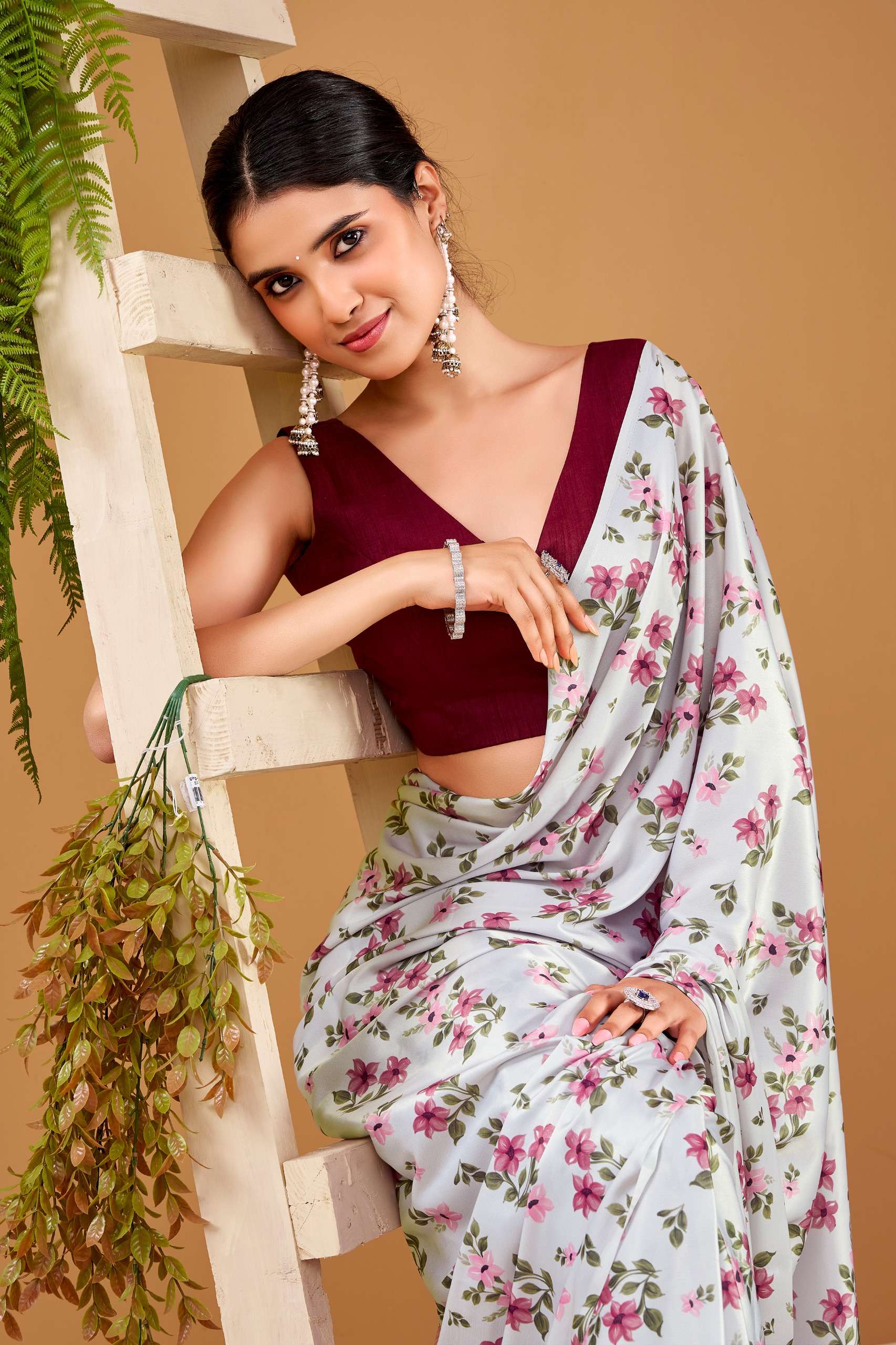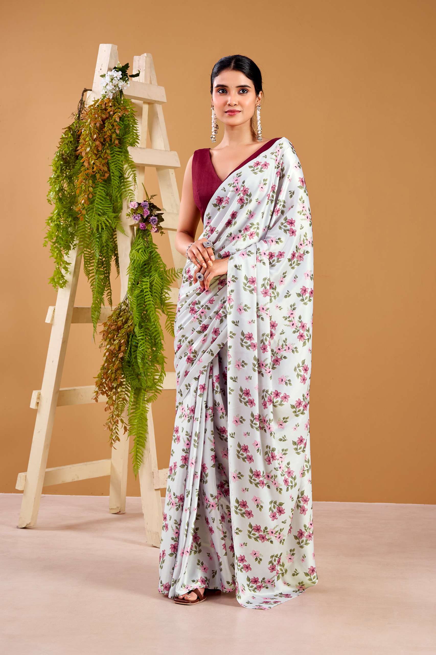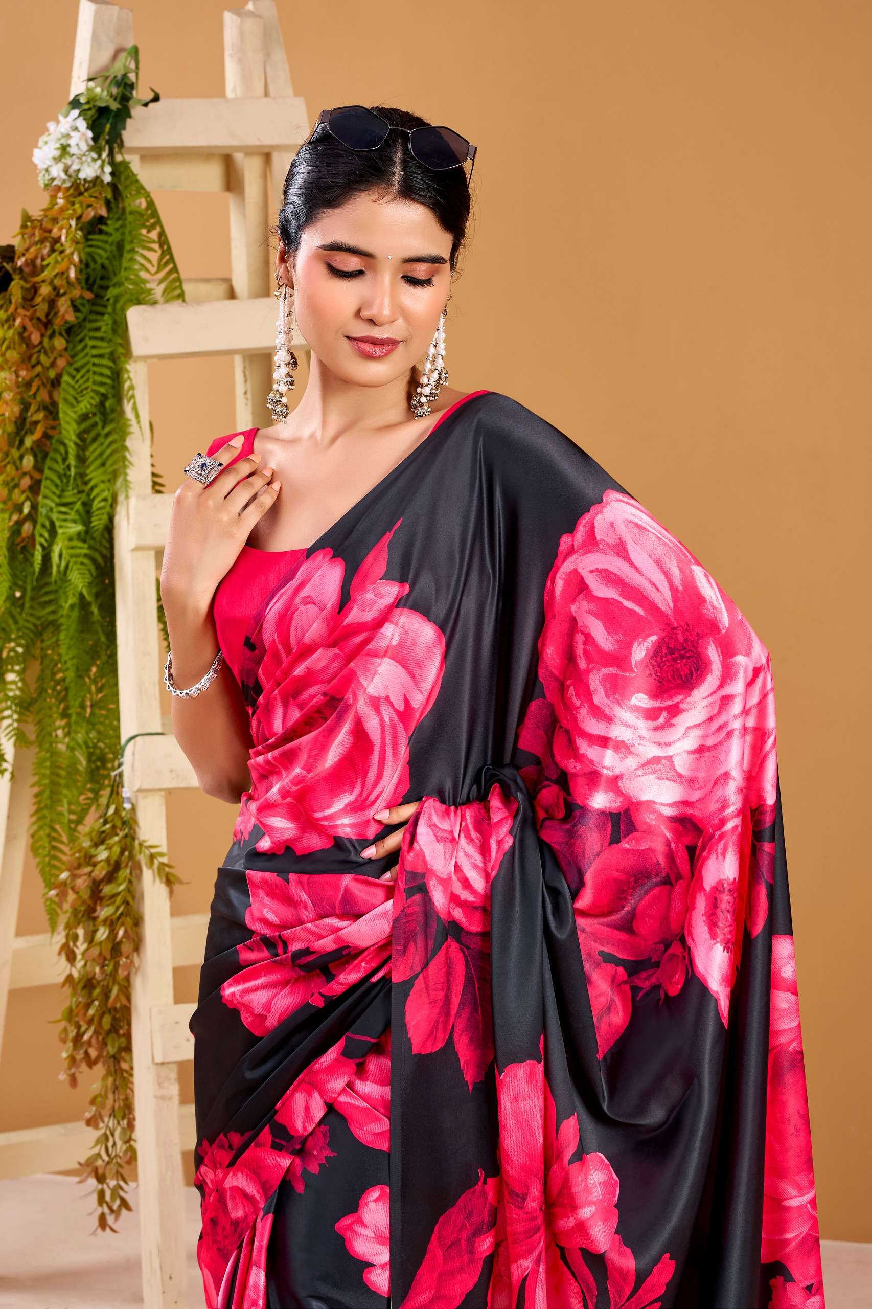 *Saree* Saree Fabric : Satin Silk Saree Work : Floral Print Saree Length : 5.5 meter