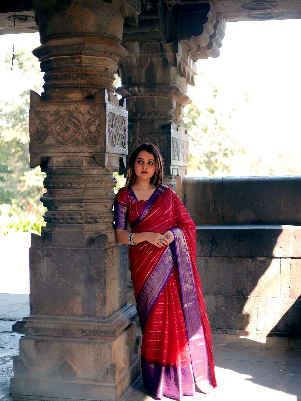 *Blouse (Unstitched)* Blouse Fabric : Crepe Blouse Work : Zari Weaving Work Blouse Length : 0.80 meter