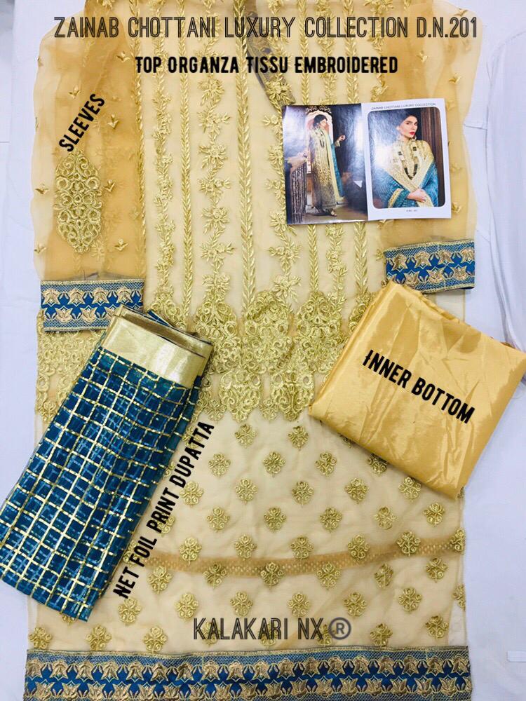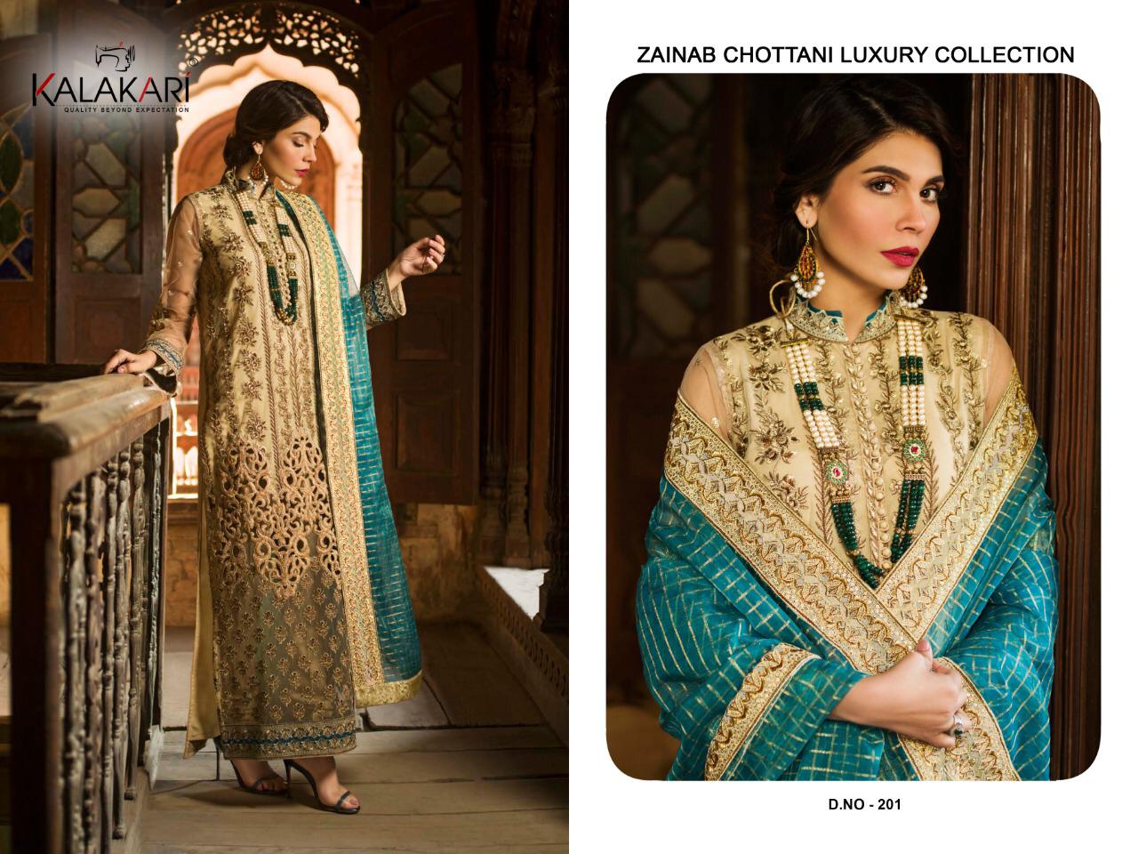 Buy Online Zainab Cottani Luxury Collection By Kalakari Nx 201 Series Fancy Party Wear Pakistani Style Suit Collection Wholesaler Surat 1 Pcs of Full Catalogue at Wholesale Price. Looking for Zainab Cottani Luxury Collection By Kalakari Nx 201 Series Fancy Party Wear Pakistani Style Suit Collection Wholesaler Surat Full Catalouge at Best Price? Buy Now Zainab Cottani Luxury Collection By Kalakari Nx 201 Series Fancy Party Wear Pakistani Style Suit Collection Wholesaler Surat at Wholesale Rate of Rs 1299 with Total 1 Pcs from authroized dealer and supplier of Brand. Cost of Each piece is just only Rs 1299 which is very low and affordable price to resale the product in your retail store ,This is Surat based Wholesale Supplier & Dealer of Brand. Click on Brand name to Know more about Brand's products.Call or Whatsapp on 9898838984 for booking or enquiry