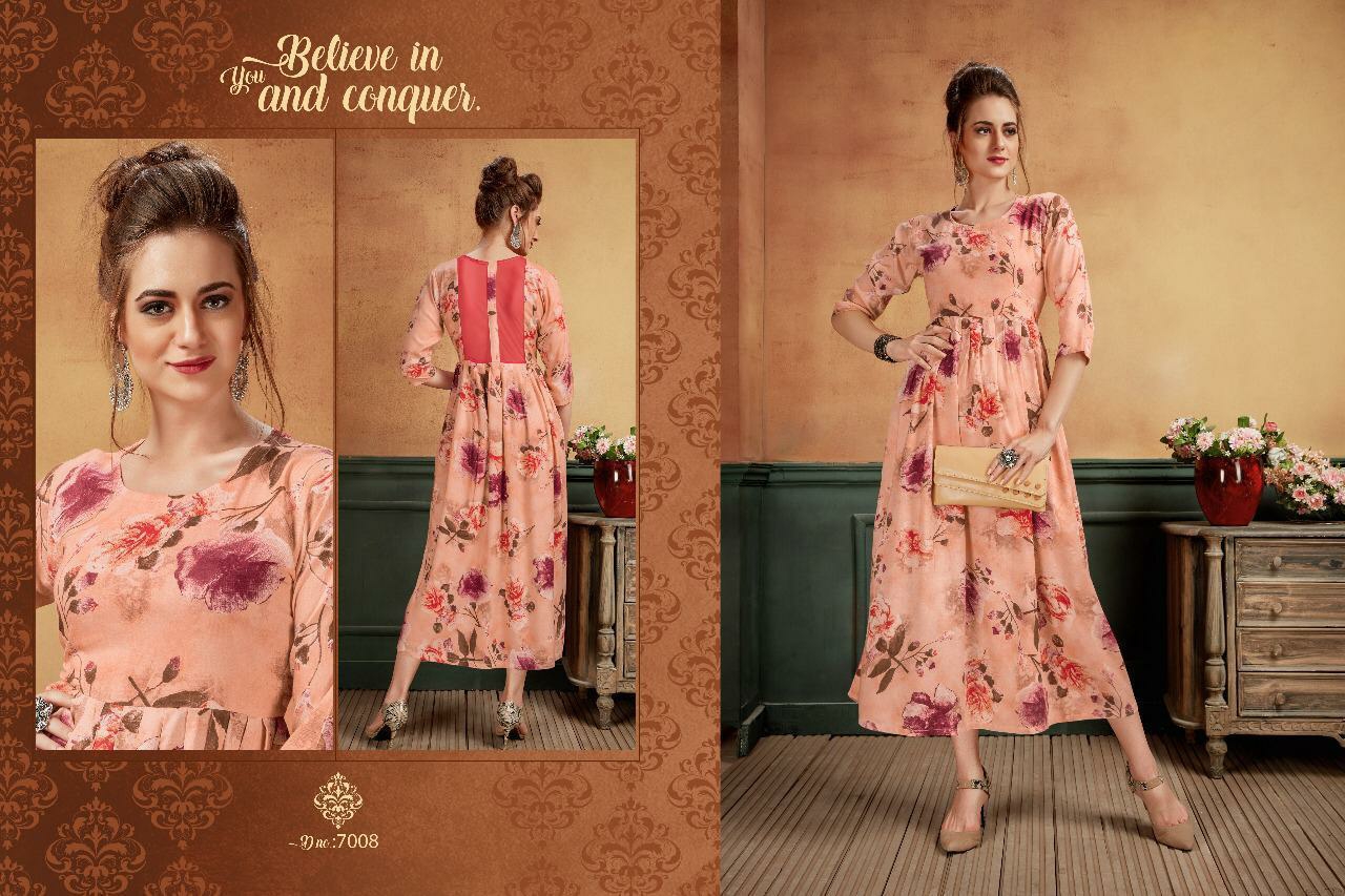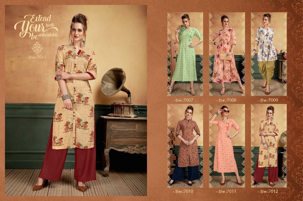 *Brand :* Kurti times *Catalog Name :* Zara *Price :* ?565 *Piece :* 6 *Total Price :* 3390 ( GST Extra ) *Size :* L,XL,XXL *Fabric :* Rayon *Availibility :* On Booking |