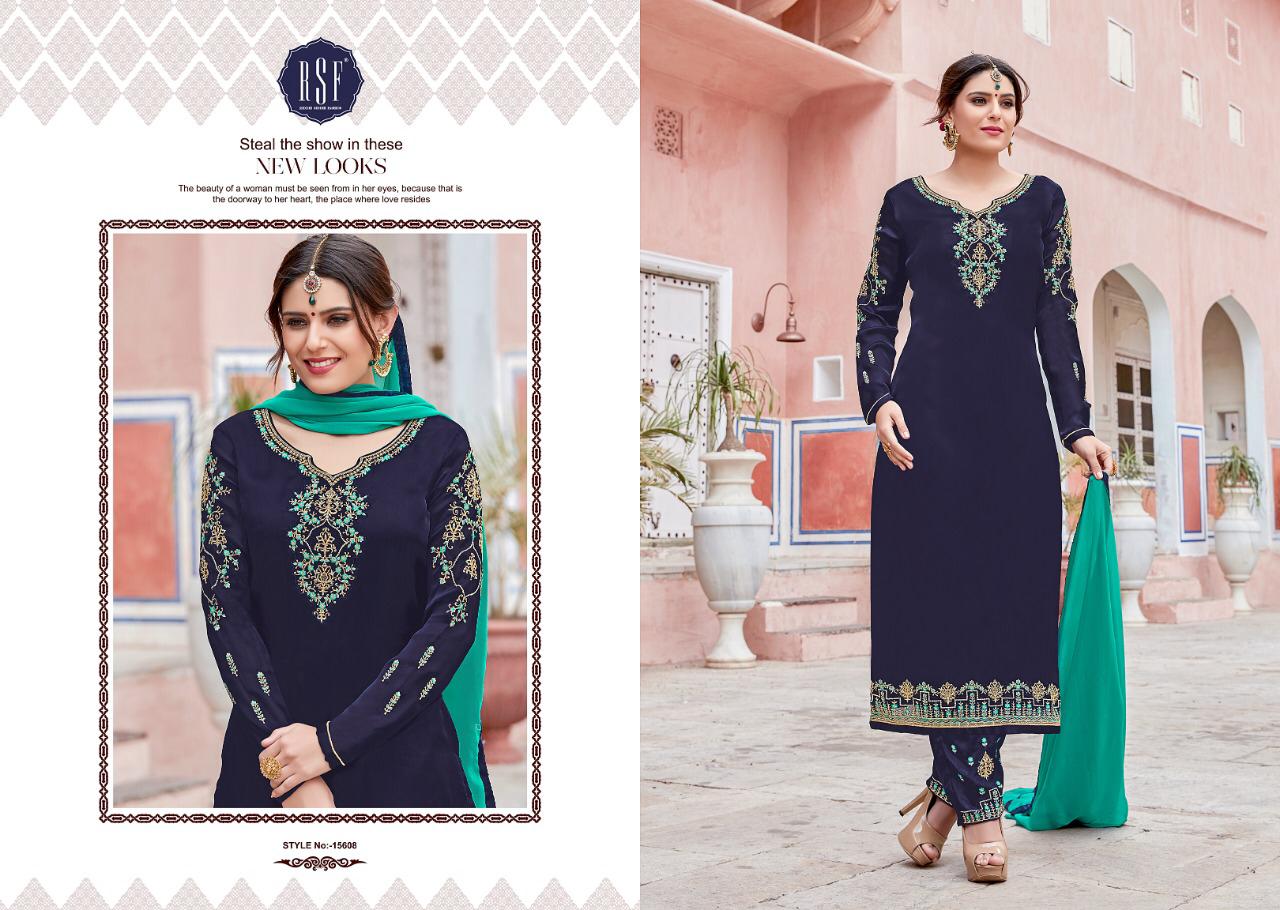 Zarina By Rsf Satin Georgette Embroidered Designer Party Wear Suits Wholesale Supplier Gujarat