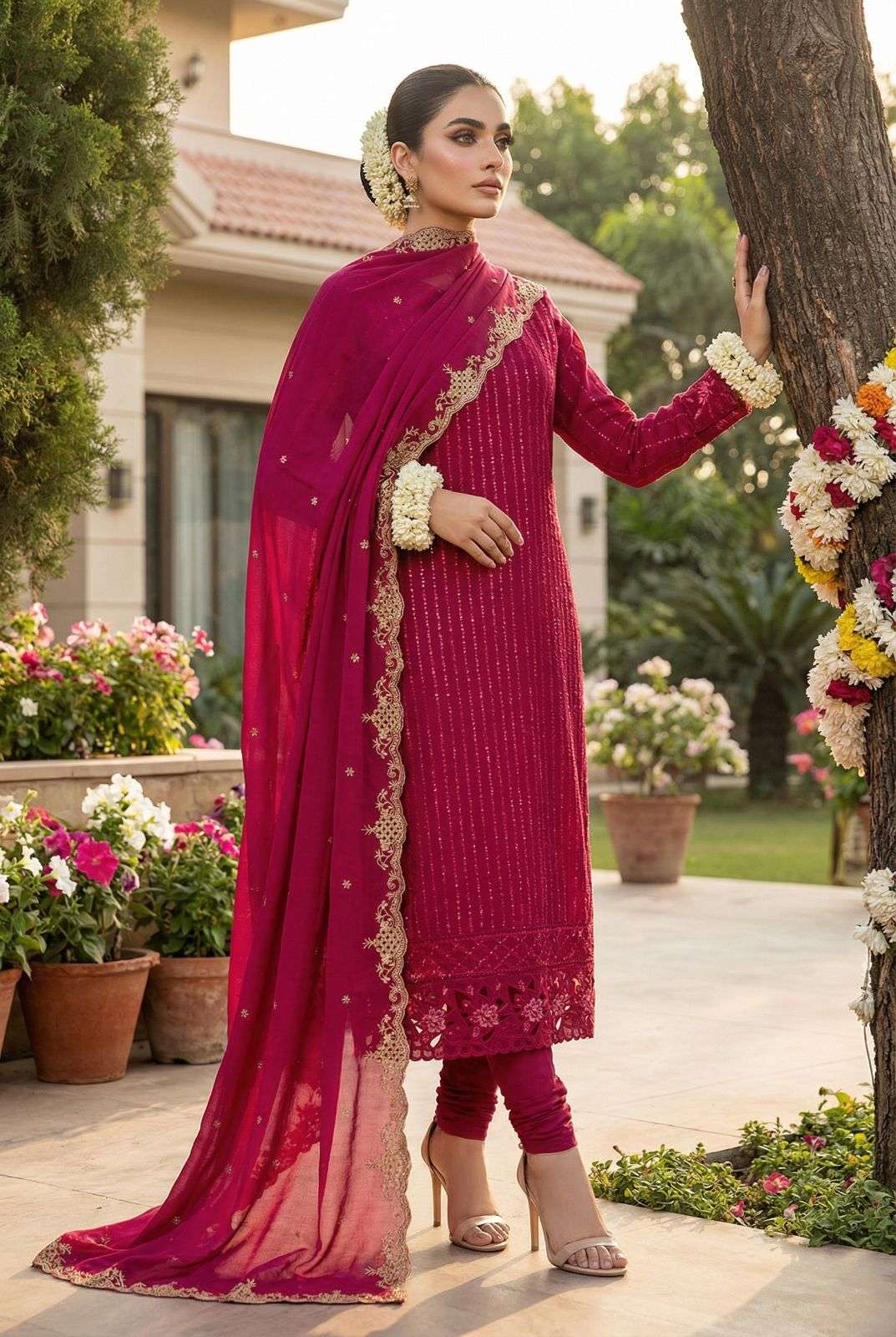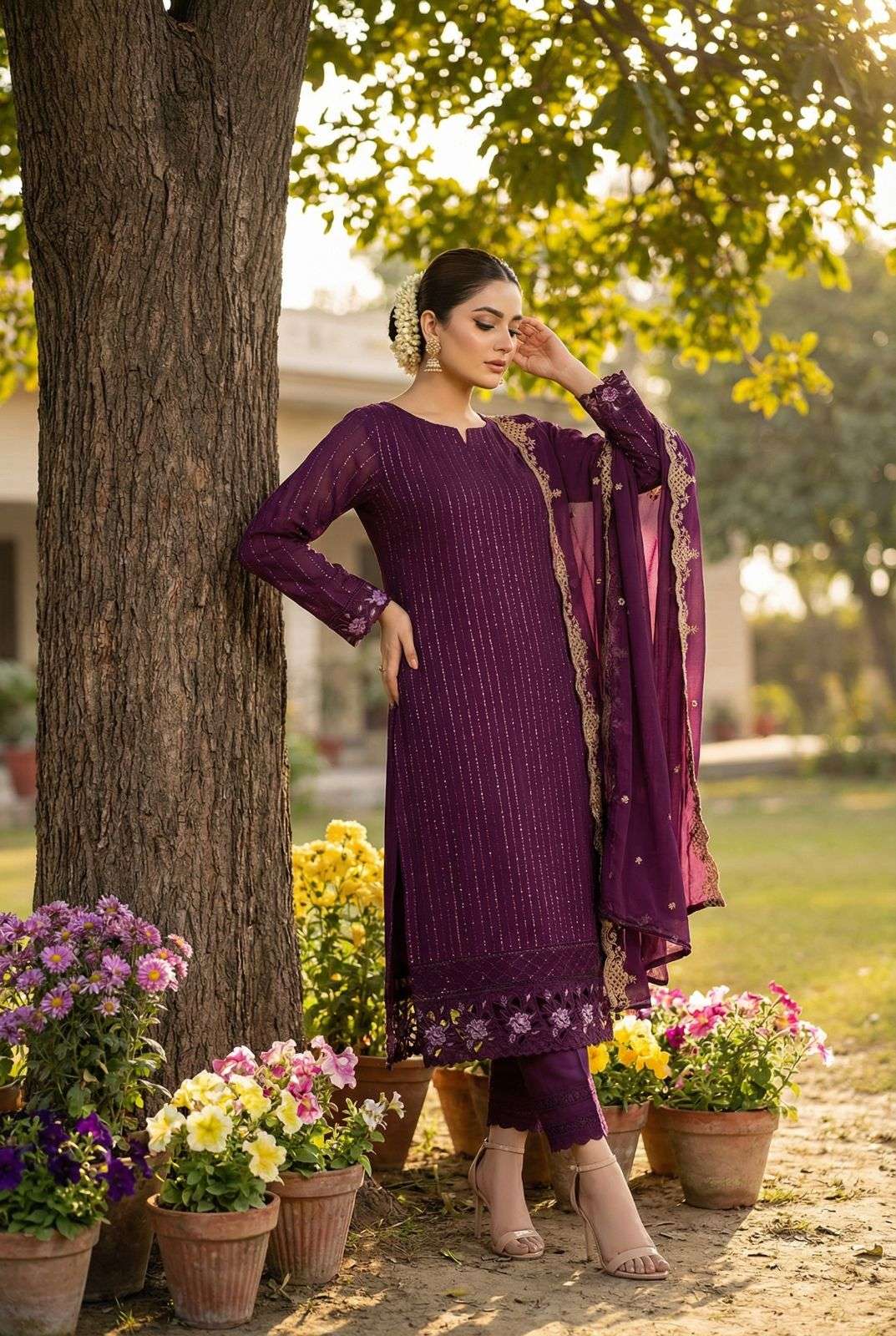 Fabric details _______________ TOP- HEAVY FOX GEORGETTE EITH EMBROIDERY SEQUENCE WORK