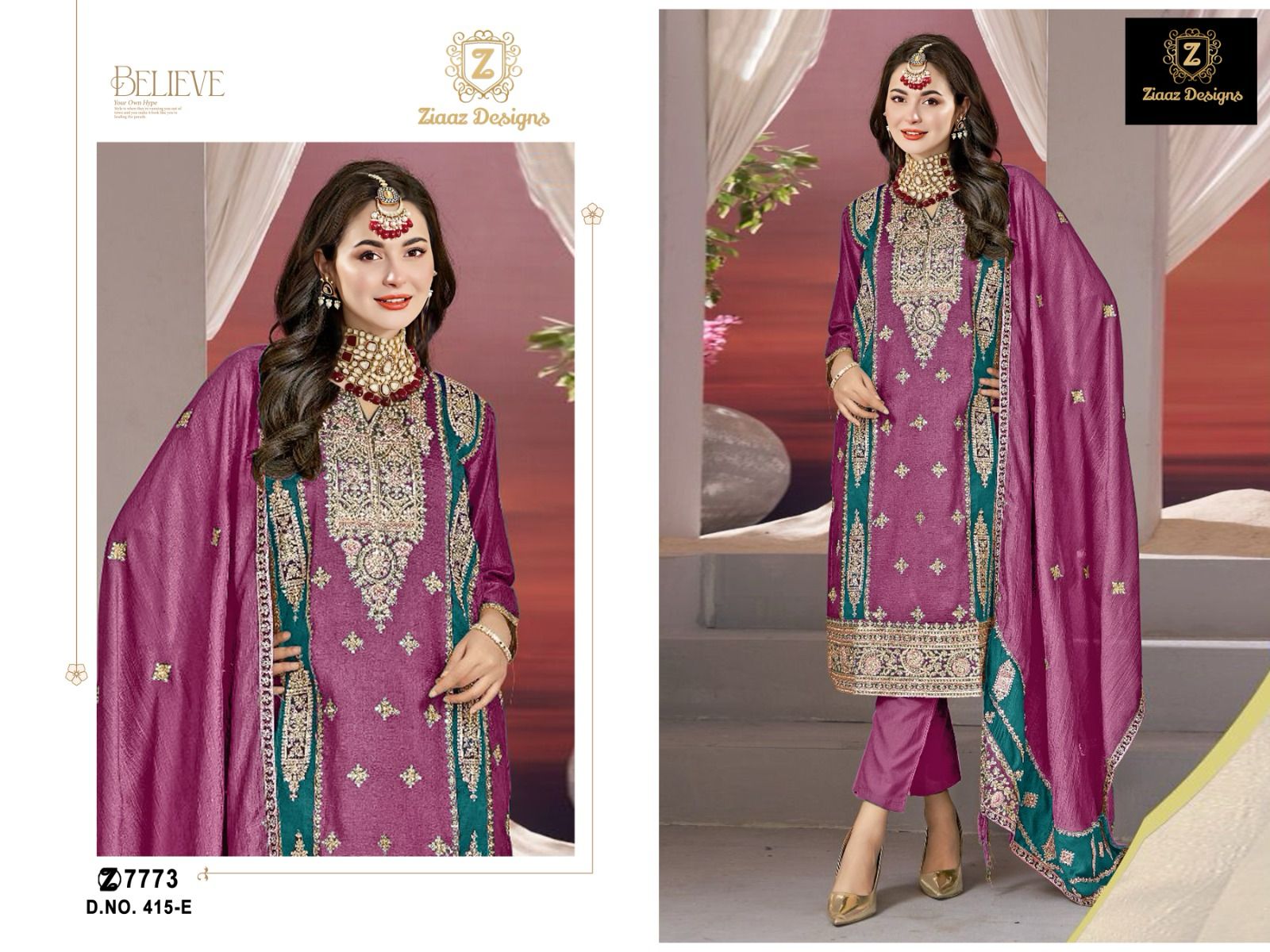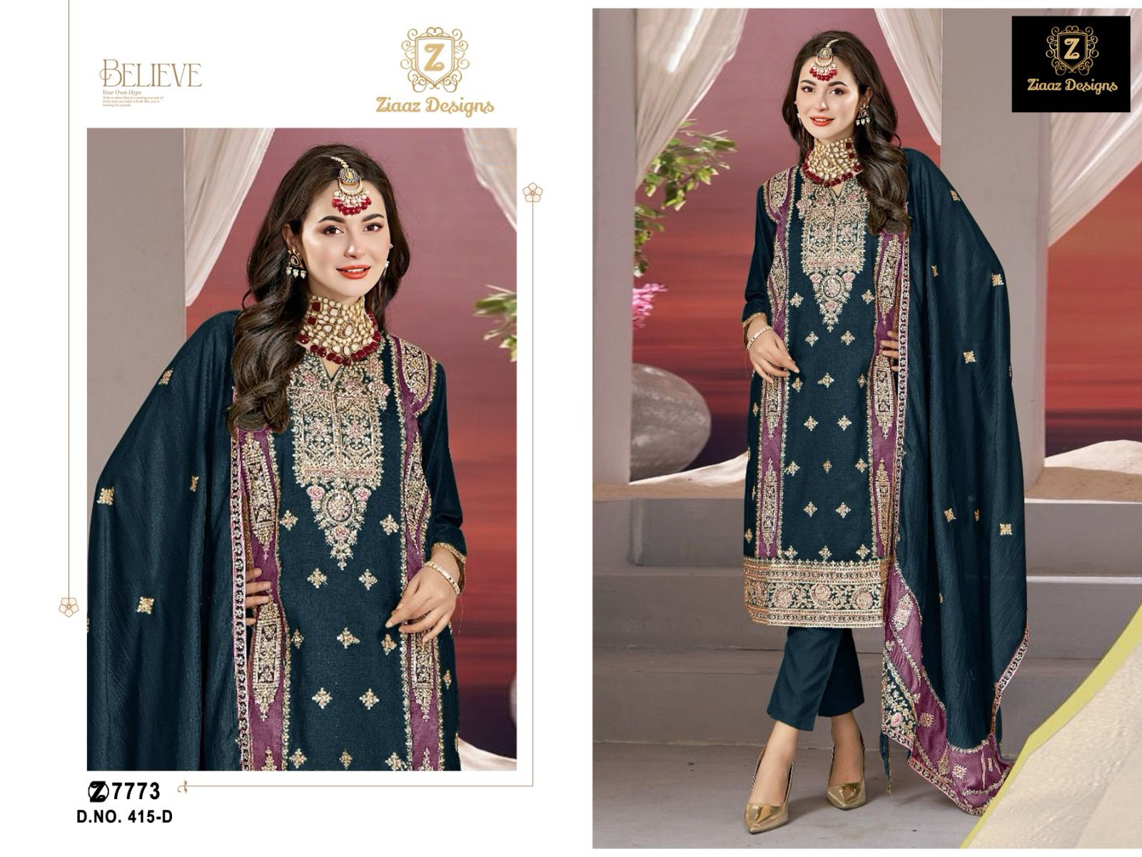 Ziaaz Designs D No 415 Chinon Embroidery Collection Manufacturer Surat