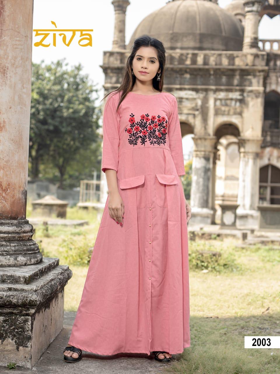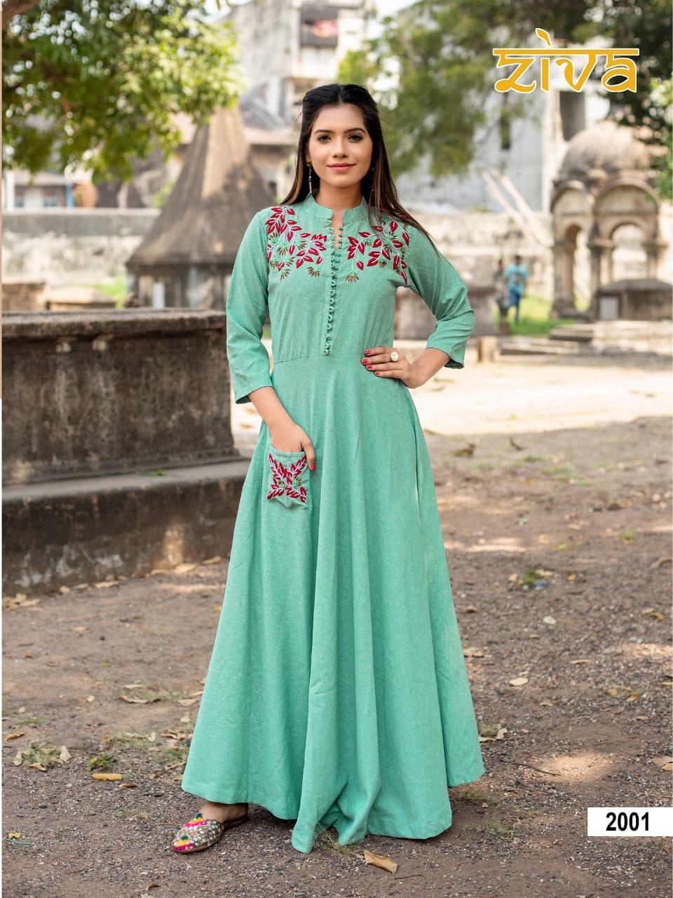 Ziva Vol 2 2001 Series Fancy Cotton Base Gown Style Kurti Catlog Wholesale Dealer Surat