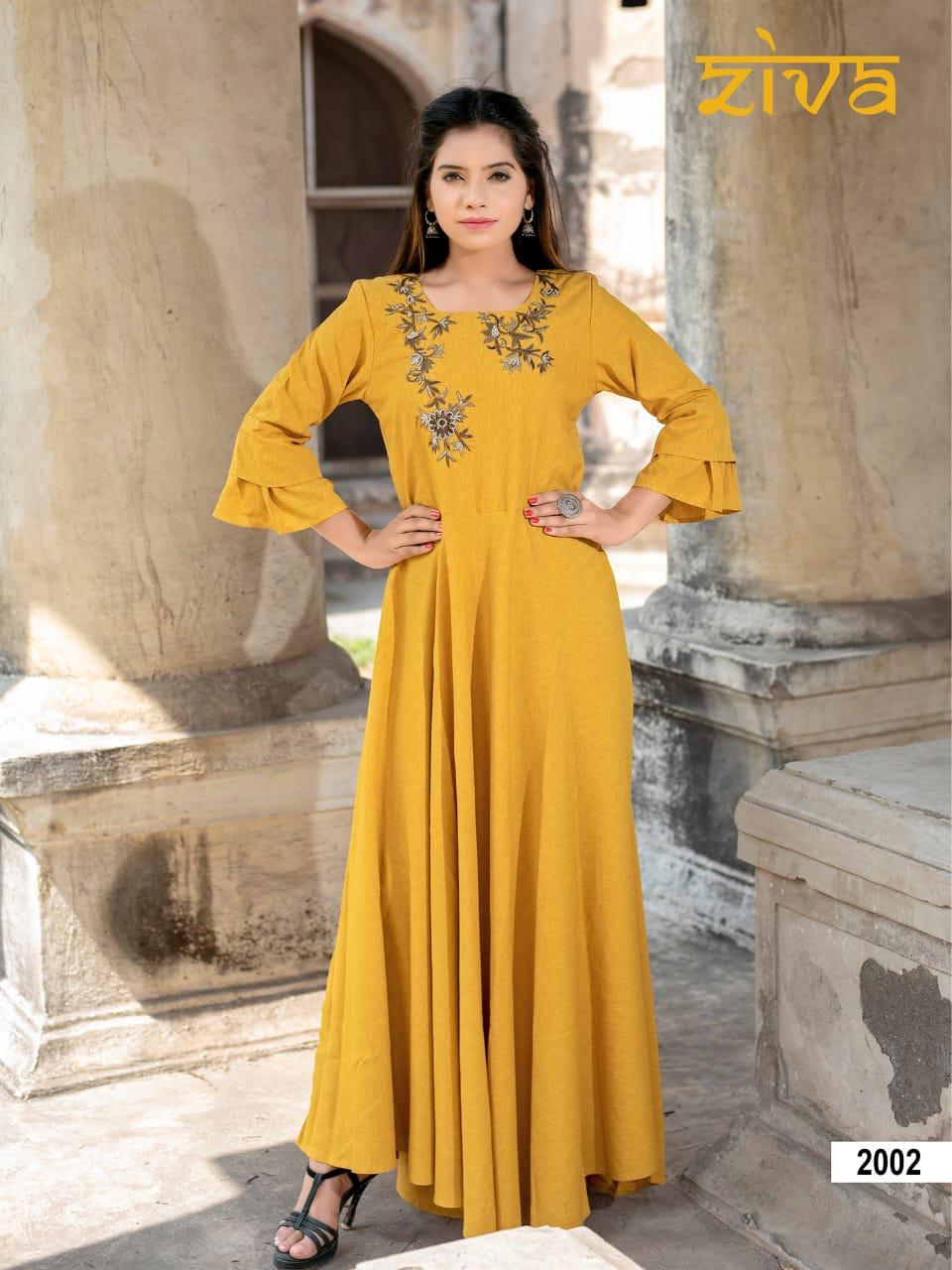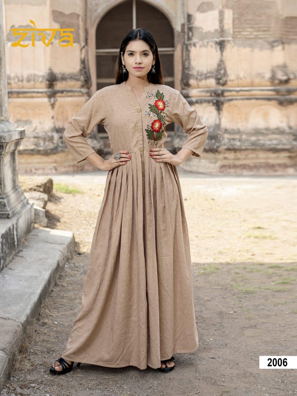 Buy Online Ziva Vol 2 2001 Series Fancy Cotton Base Gown Style Kurti Catlog Wholesale Dealer Surat 7 Pcs of Full Catalogue at Wholesale Price. Looking for Ziva Vol 2 2001 Series Fancy Cotton Base Gown Style Kurti Catlog Wholesale Dealer Surat Full Catalouge at Best Price? Buy Now Ziva Vol 2 2001 Series Fancy Cotton Base Gown Style Kurti Catlog Wholesale Dealer Surat at Wholesale Rate of Rs 8064 with Total 7 Pcs from authroized dealer and supplier of Brand. Cost of Each piece is just only Rs 1152 which is very low and affordable price to resale the product in your retail store ,This is Surat based Wholesale Supplier & Dealer of Brand. Click on Brand name to Know more about Brand's products.Call or Whatsapp on 9898838984 for booking or enquiry