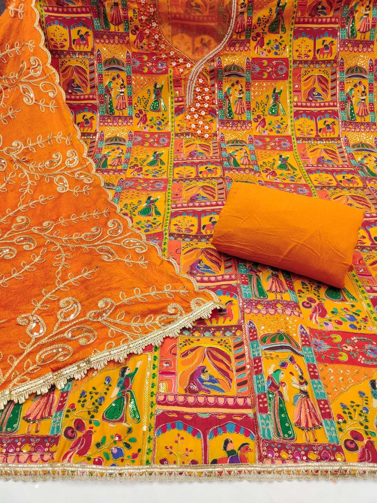 Top:PURE HEAVY VISCOSE WORK WITH HANDWORK PURE NAZMIN WORK DUPATTA (2.15 MIT) BOTTOM :RAYON
