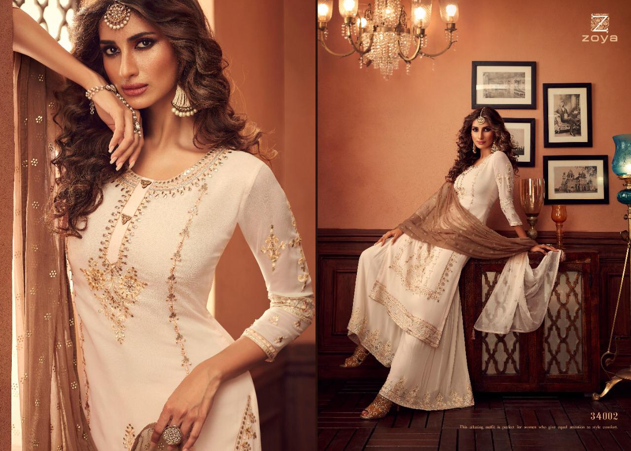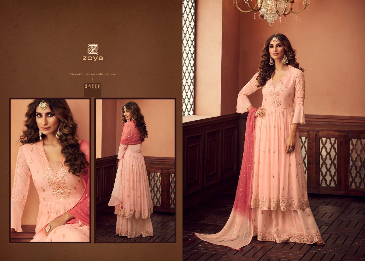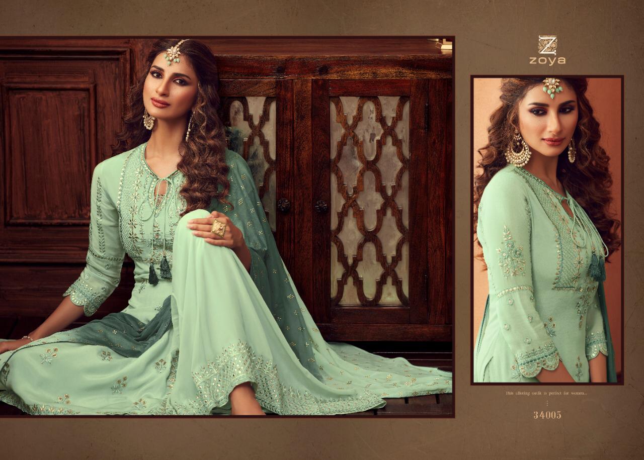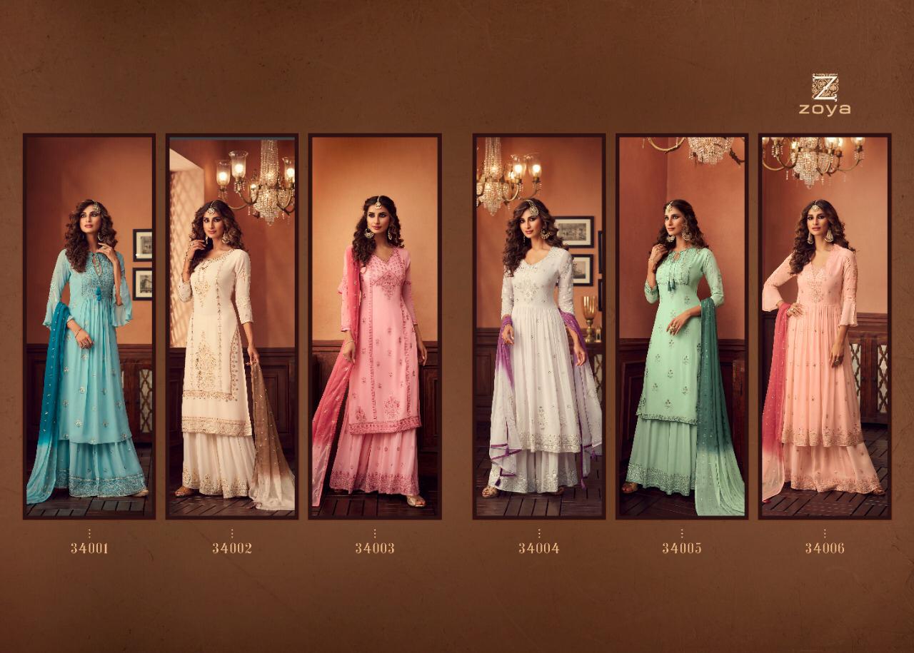 Buy Online Zoya Tradition Series 34001 To 34006 Designer Suits Set And Single Wholesale Supplier And Dealer Gujarat 6 Pcs of Full Catalogue at Wholesale Price. Looking for Zoya Tradition Series 34001 To 34006 Designer Suits Set And Single Wholesale Supplier And Dealer Gujarat Full Catalouge at Best Price? Buy Now Zoya Tradition Series 34001 To 34006 Designer Suits Set And Single Wholesale Supplier And Dealer Gujarat at Wholesale Rate of Rs 15984 with Total 6 Pcs from authroized dealer and supplier of Zoya Brand. Cost of Each piece is just only Rs 2664 which is very low and affordable price to resale the product in your retail store ,This is Surat based Wholesale Supplier & Dealer of Zoya Brand. Click on Brand name to Know more about Zoya Brand's products.Call or Whatsapp on 9898838984 for booking or enquiry