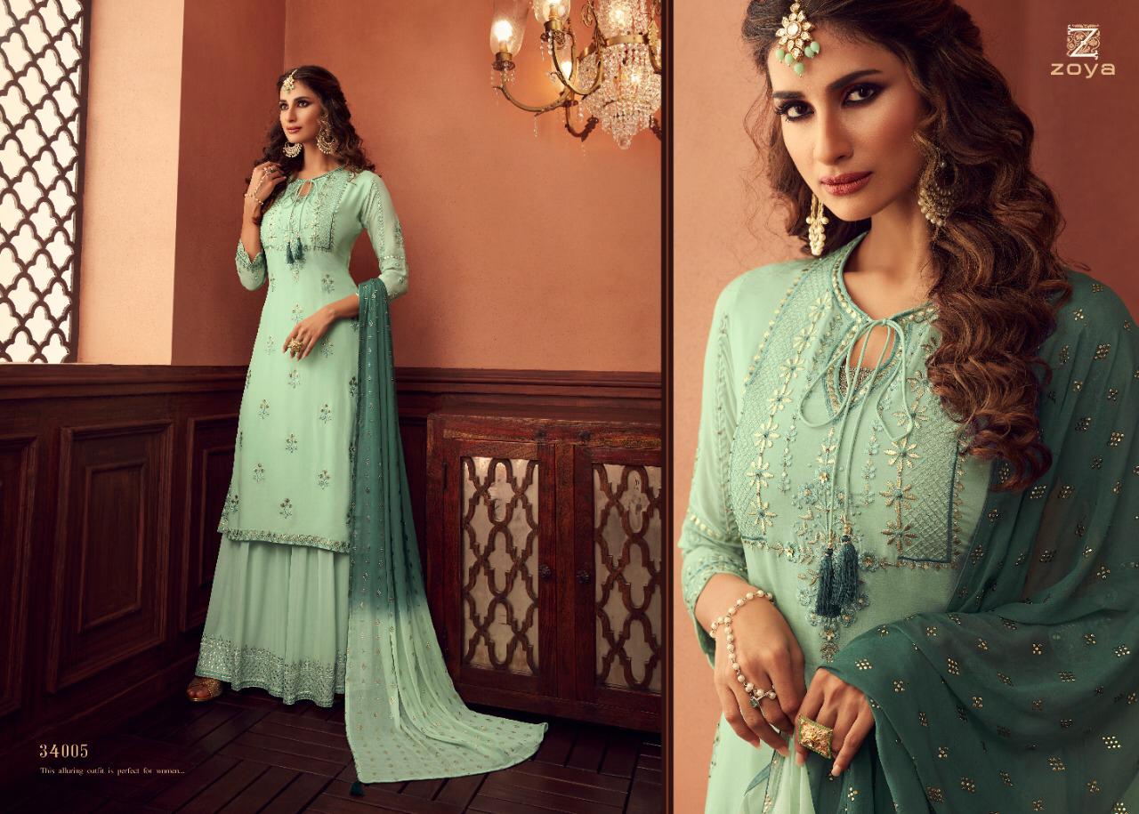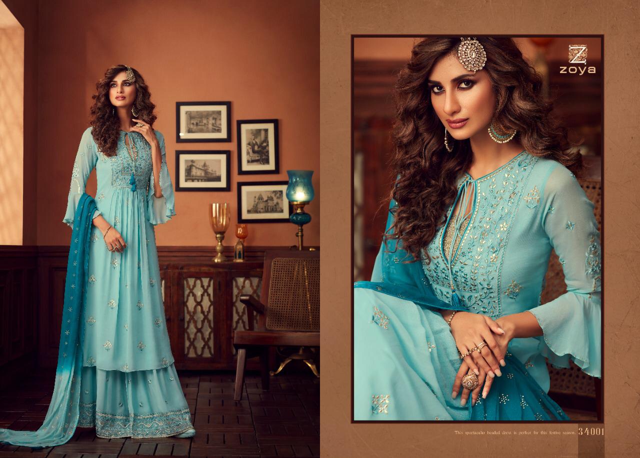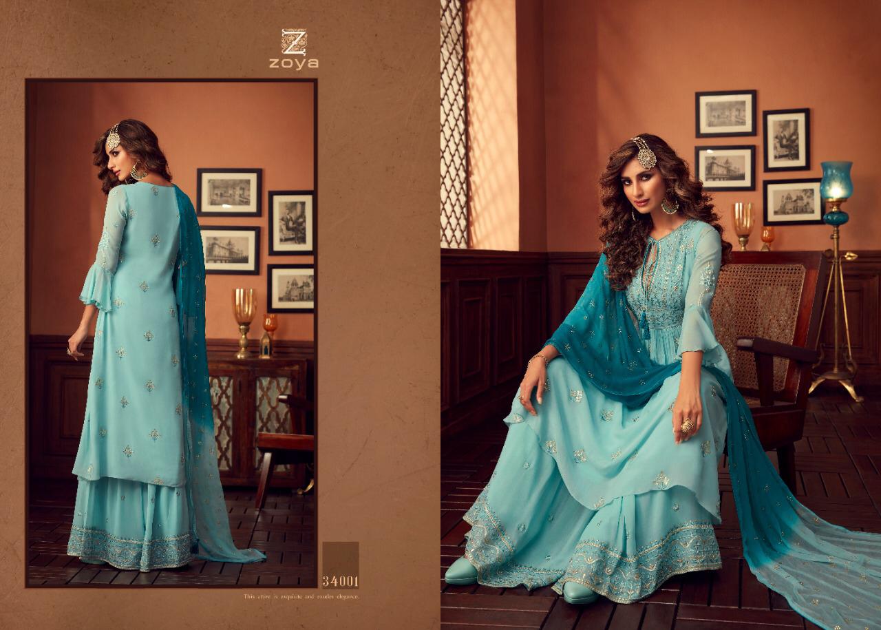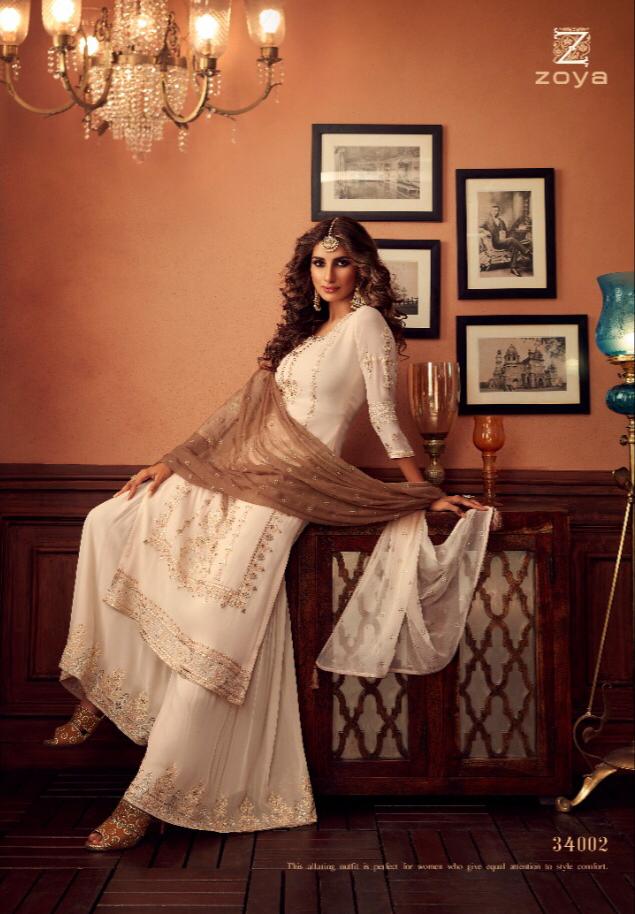 Buy Online Zoya Tradition Series 34001 To 34006 Designer Suits Set And Single Wholesale Supplier And Dealer Gujarat 6 Pcs of Full Catalogue at Wholesale Price. Looking for Zoya Tradition Series 34001 To 34006 Designer Suits Set And Single Wholesale Supplier And Dealer Gujarat Full Catalouge at Best Price? Buy Now Zoya Tradition Series 34001 To 34006 Designer Suits Set And Single Wholesale Supplier And Dealer Gujarat at Wholesale Rate of Rs 15984 with Total 6 Pcs from authroized dealer and supplier of Zoya Brand. Cost of Each piece is just only Rs 2664 which is very low and affordable price to resale the product in your retail store ,This is Surat based Wholesale Supplier & Dealer of Zoya Brand. Click on Brand name to Know more about Zoya Brand's products.Call or Whatsapp on 9898838984 for booking or enquiry