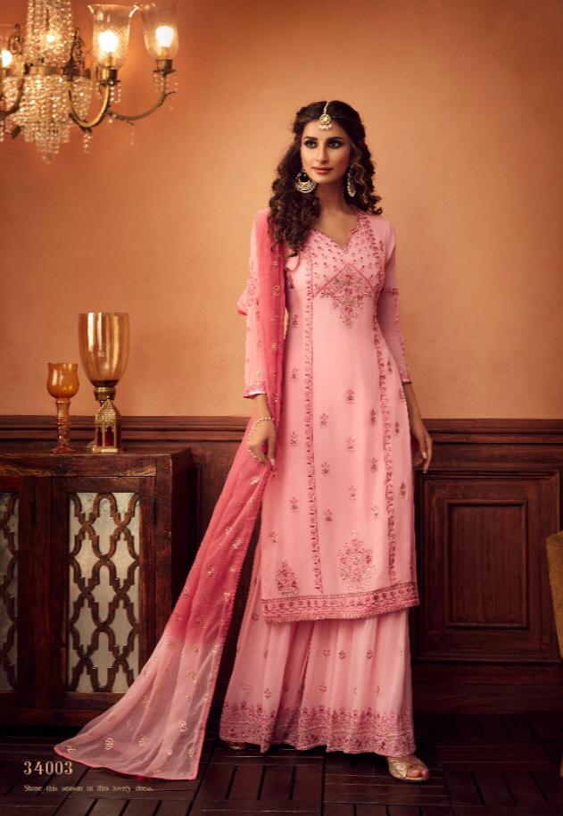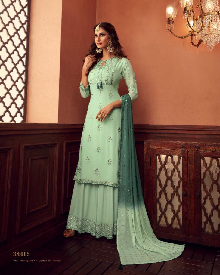 Hello All... *Greetings From *ZOYA* Surat Series - 34001 to 34006. Fabric Details *Top:* GEORGETTE *FOIL WORK* With Inner Shanton *BOT:* GEORGETTE *FOIL WORK* With Inner Shanton *Dup:* CHIIFFON *FOIL WORK* Presenting: *SIGNATURE* Collection from The House of *ZOYA*.... The Exclusive *Sharara* and *Gharara* *Anarkali Flair and Straight Suits* with Rich *GOLD FOIL* work in all Top, Bottom and Duppatta...... Looking forward to your Support as Always. *ZOYA TRADITION* Average Price: RS; 2664/- per pcs *Plus GST* Single price ask personally *PRICE LIST TO FOLLOW* Regards *ZOYA....* |