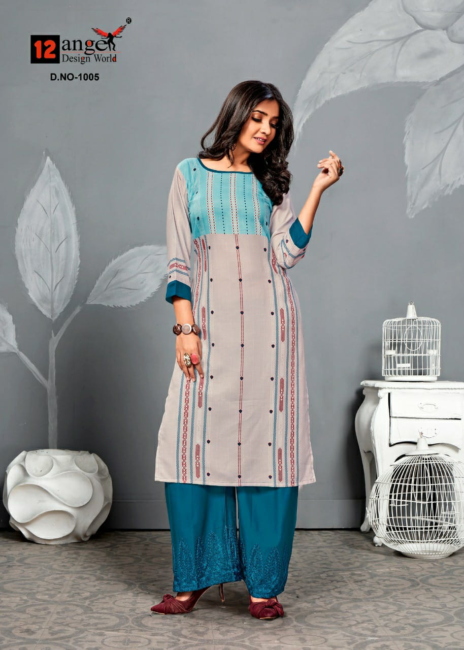 Heritage By 12angel 1001 Series Designer Reyon Digital Printed Kurti With Plazzo Catlog Wholesale De...