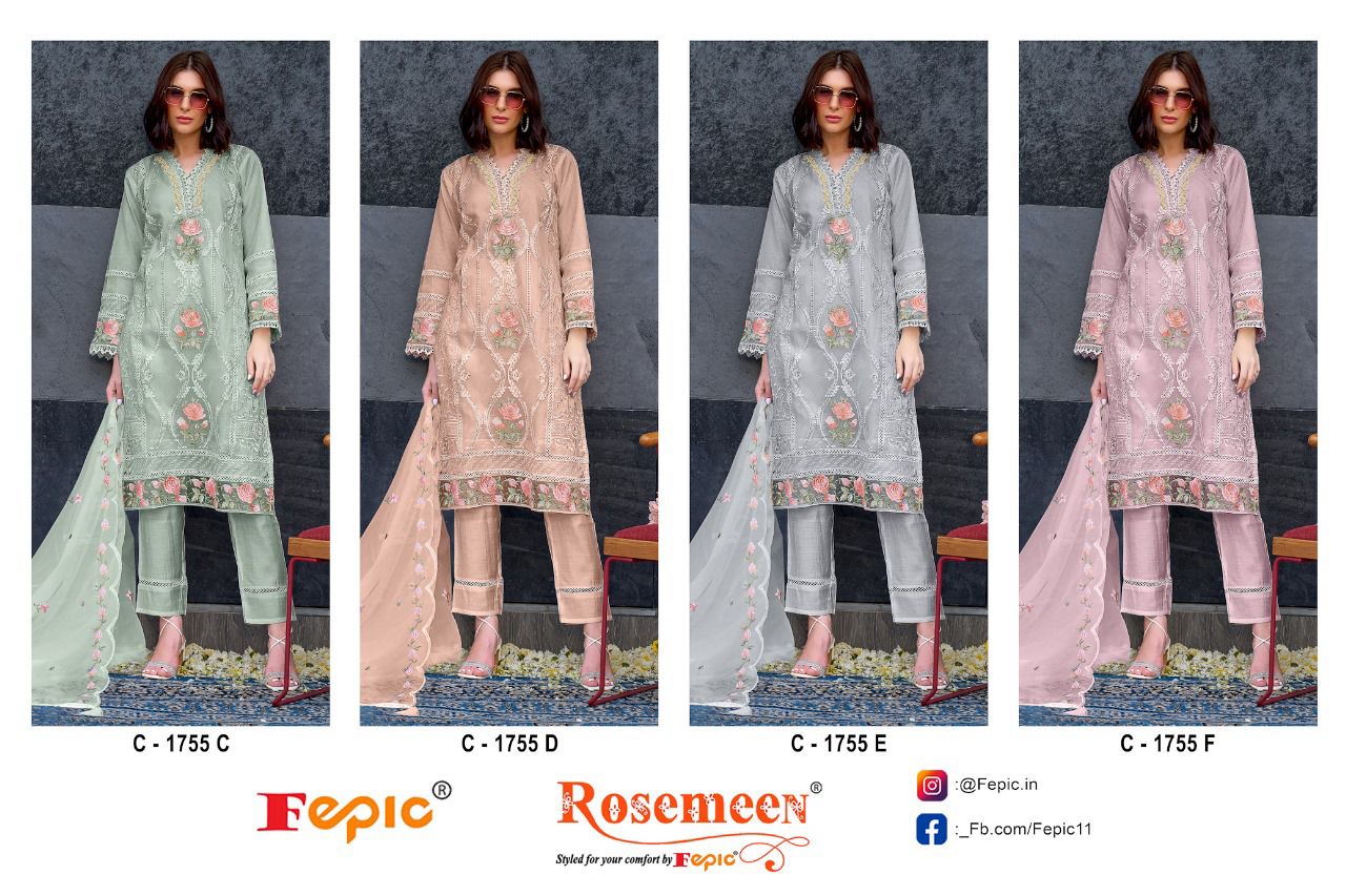 ROSEMEEN D NO C 1762 by FEPIC ORGANZA suit collection manufacturer surat