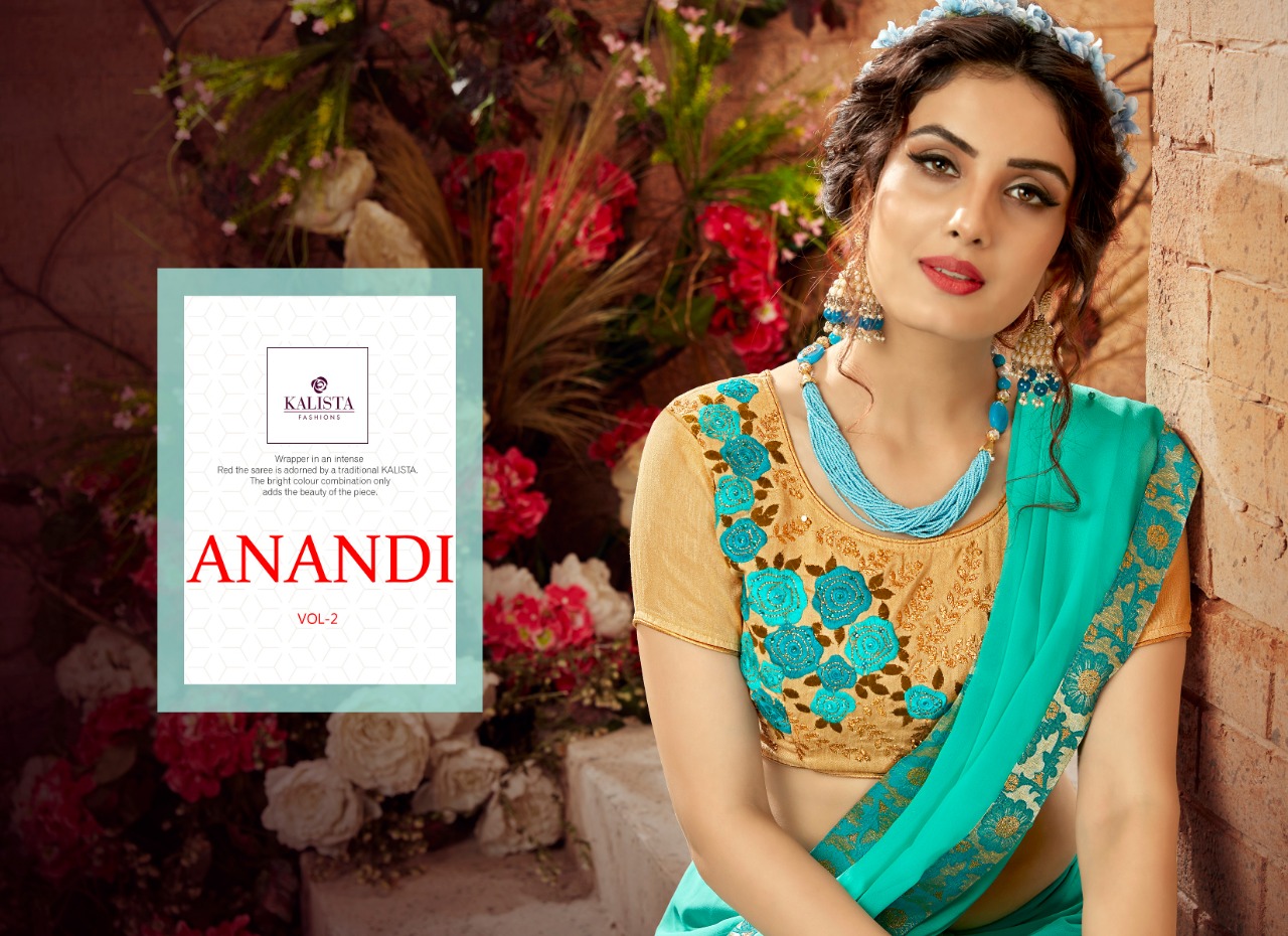 Anandi Vol 2 By Kalista Designer Saree With An Embroidary Blouse Series 3001 To 3010 Wholesale Deale...
