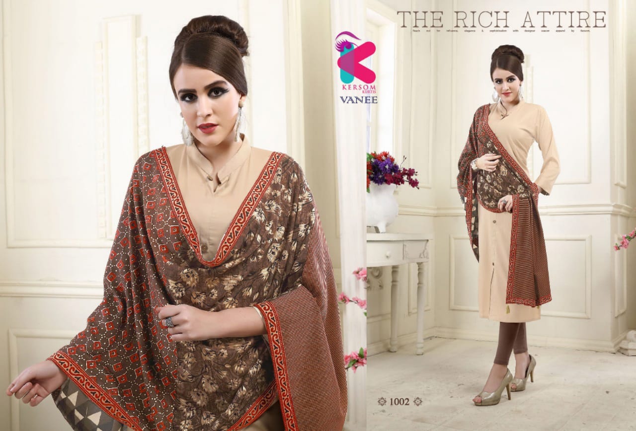 Vanee By Kersom 1001 Series Fancy Reyon Kurti With 3d Dupatta Collection Wholesaler Surat