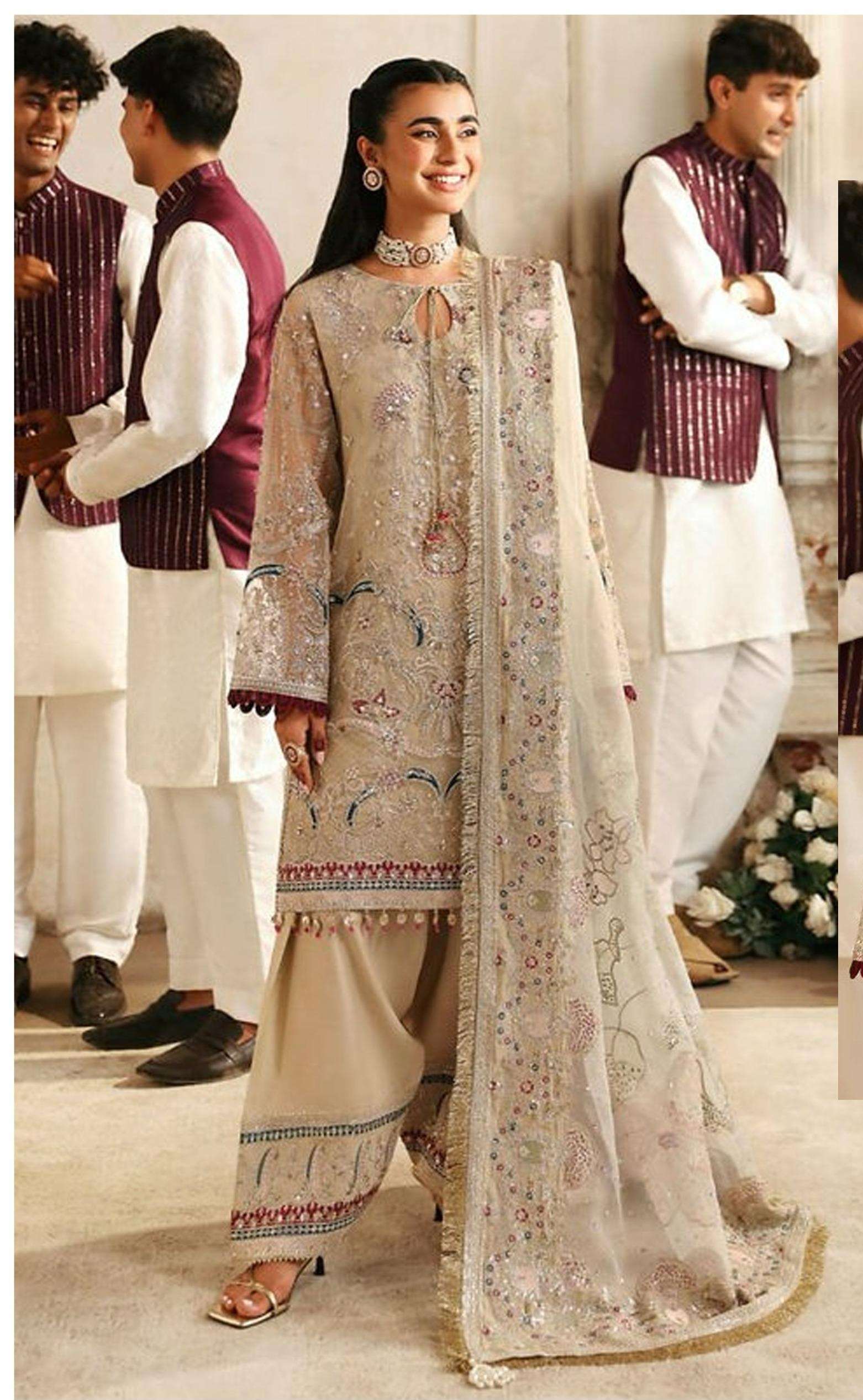 HUSN E JAAN DESIGN M 1044 By Mahnur Fashion Orgenza suit collection manufacturer surat