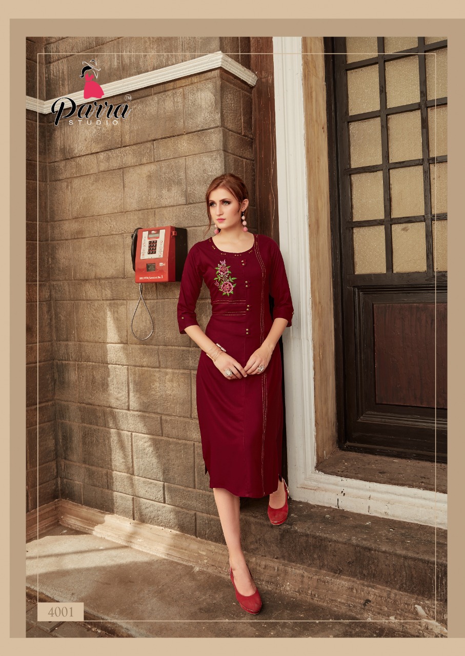 Parra Studio Zeba 1001 Series Designer Reyon Kurti Catlog Wholesale Supplier And Trader Surat