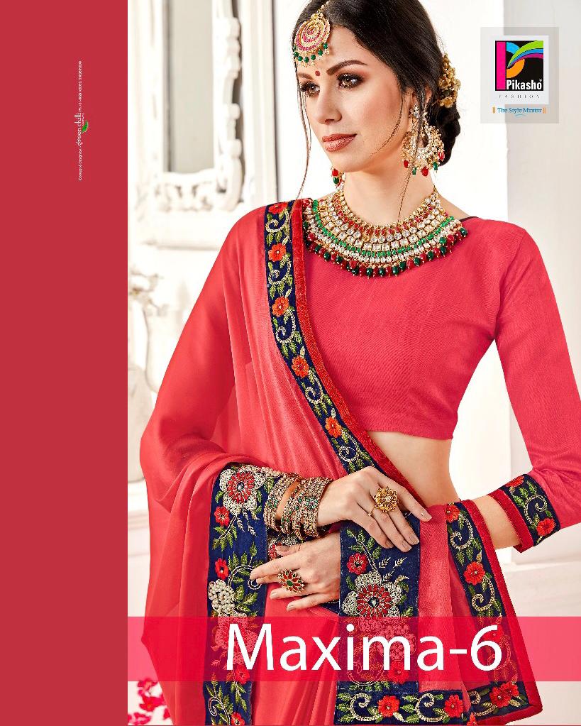 Maxima Vol 6 By Pikasho Fashion Series 96001 To 96012 Rangoli Chiffon Party Wear Sarees Wholesale Su...