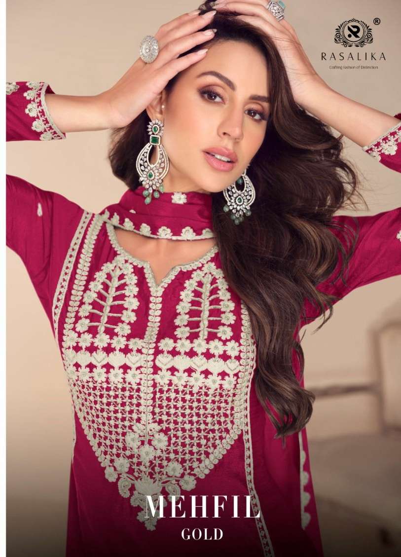 MEHFIL GOLD by RASALIKA Chinon Silk Suit collection manufacturer surat