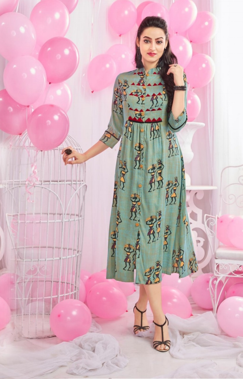 Muskan By Shivansh Trendy And Classy Reyon Kurtis Series 5001 To 5008 Wholesale Dealer N Supplier Su...