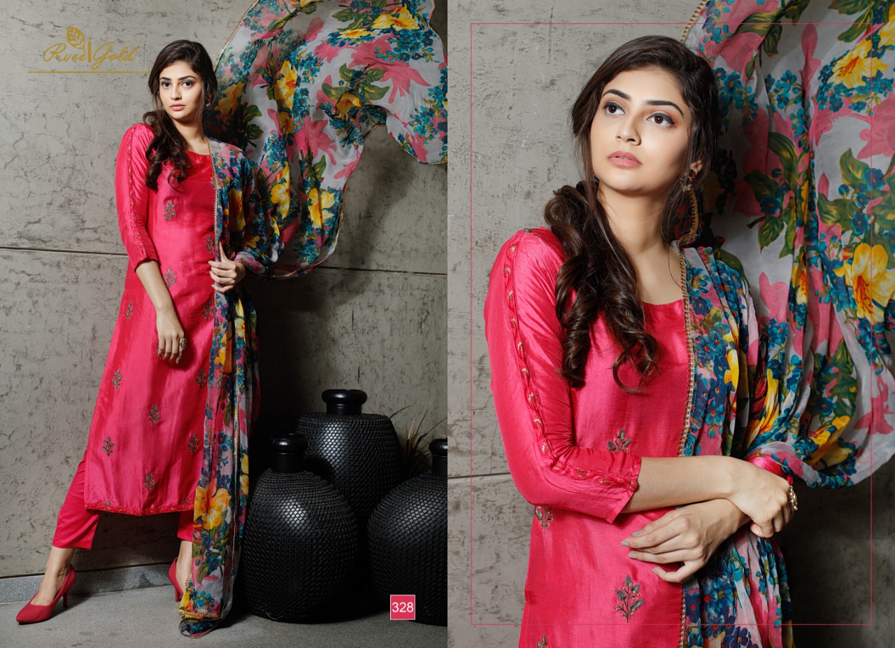 Rvee Gold Earth 275 Series Jam Satin Print Emb Suits Saller