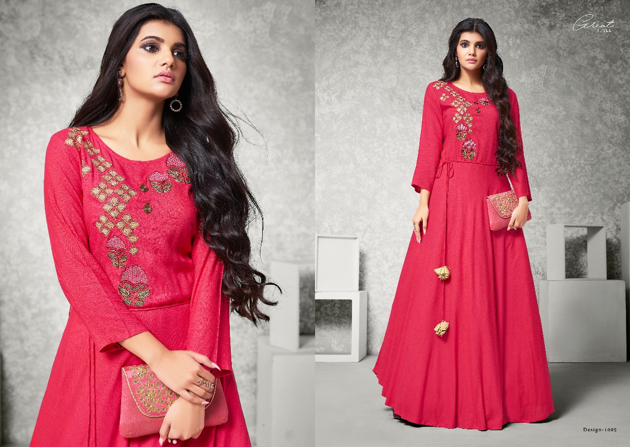 S More Ciaz 1001 Series Gown Style Kurti Catlog Wholesaler Surat