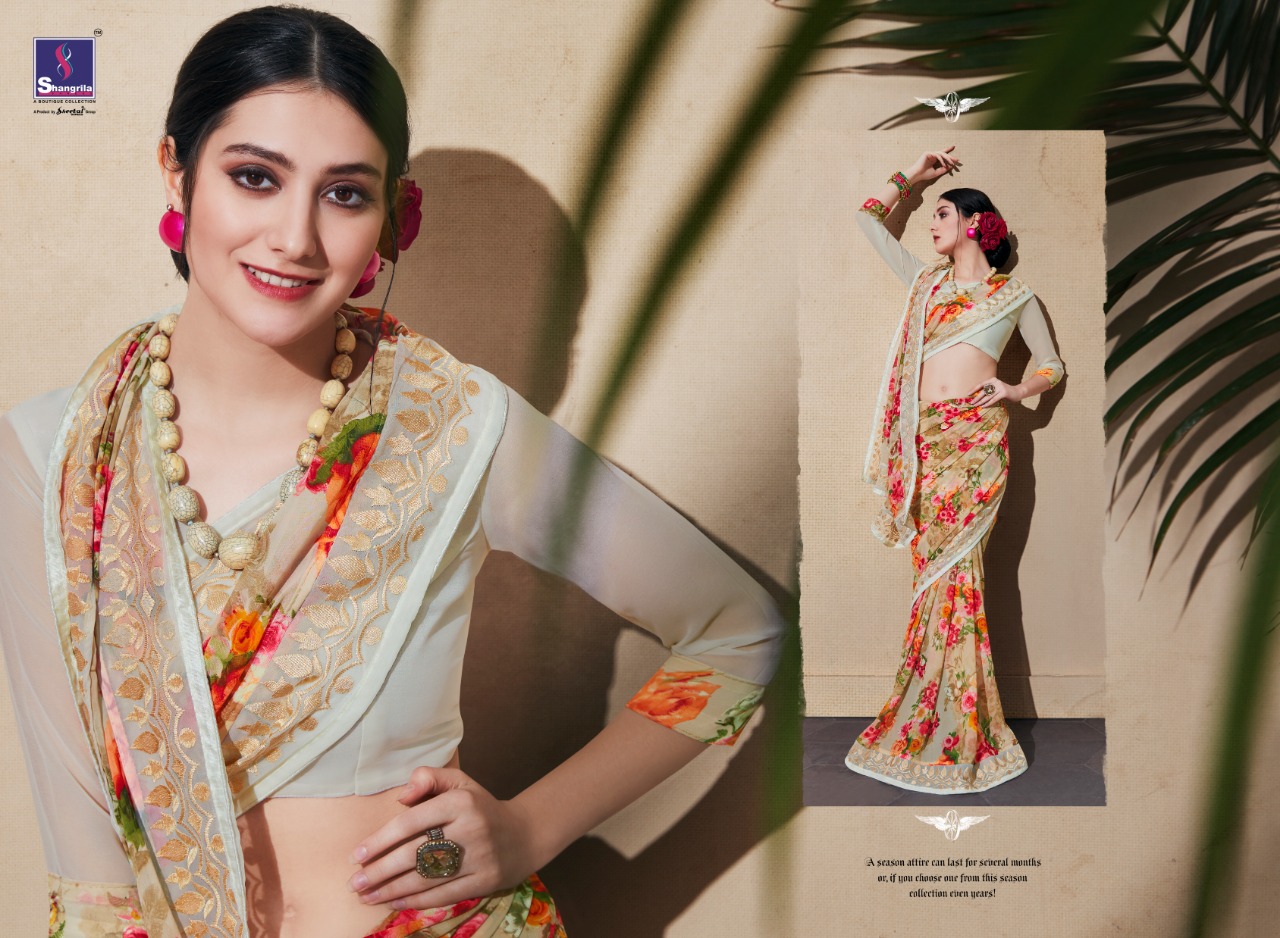 Nirvana By Shangrila Floral Printed Sarees Wholesale Supplier And Dealer Surat