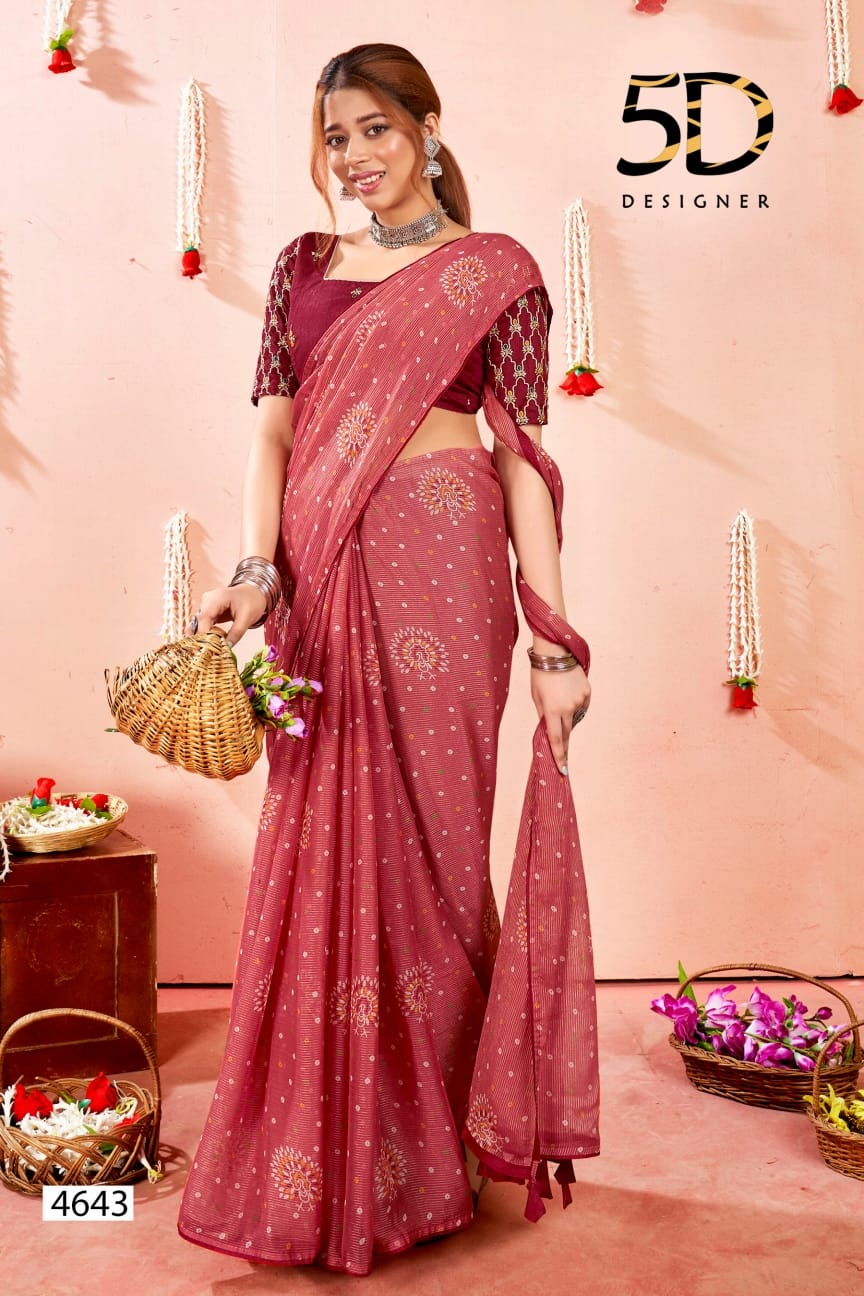 Bindu Bright Chiffon Viscos Pattern With Pipin Saree By 5d Designer