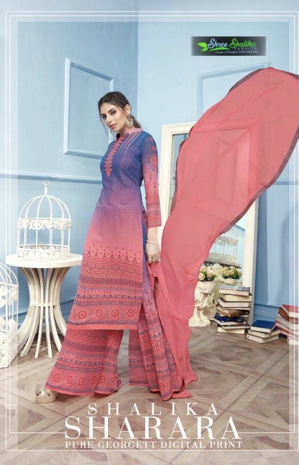 Shalika Sharara By Shree Shalika 1671 Series Fancy Pure Georgette Digital Printed Sarara Suit Catlog...