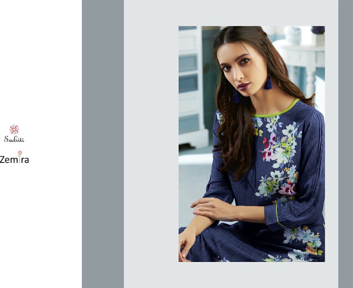 Zemira By Sudriti Reyon Printed Desinger Kurtis Wholesale Supplier And Trader Surat