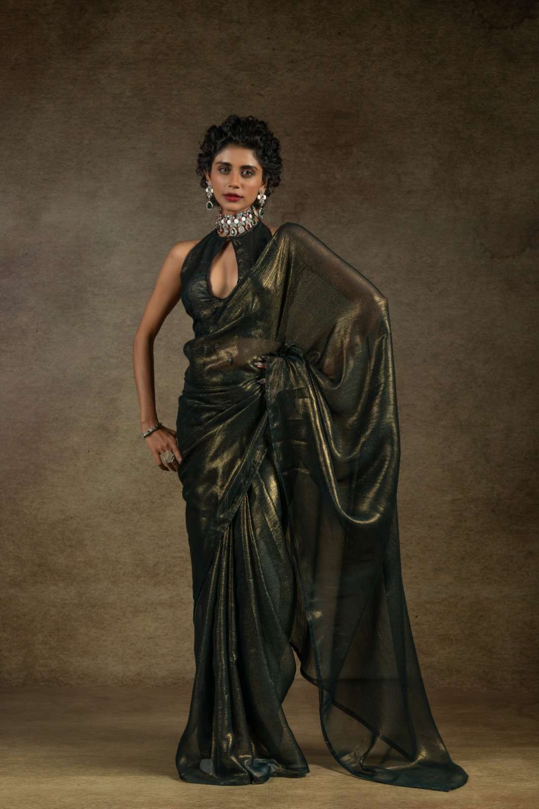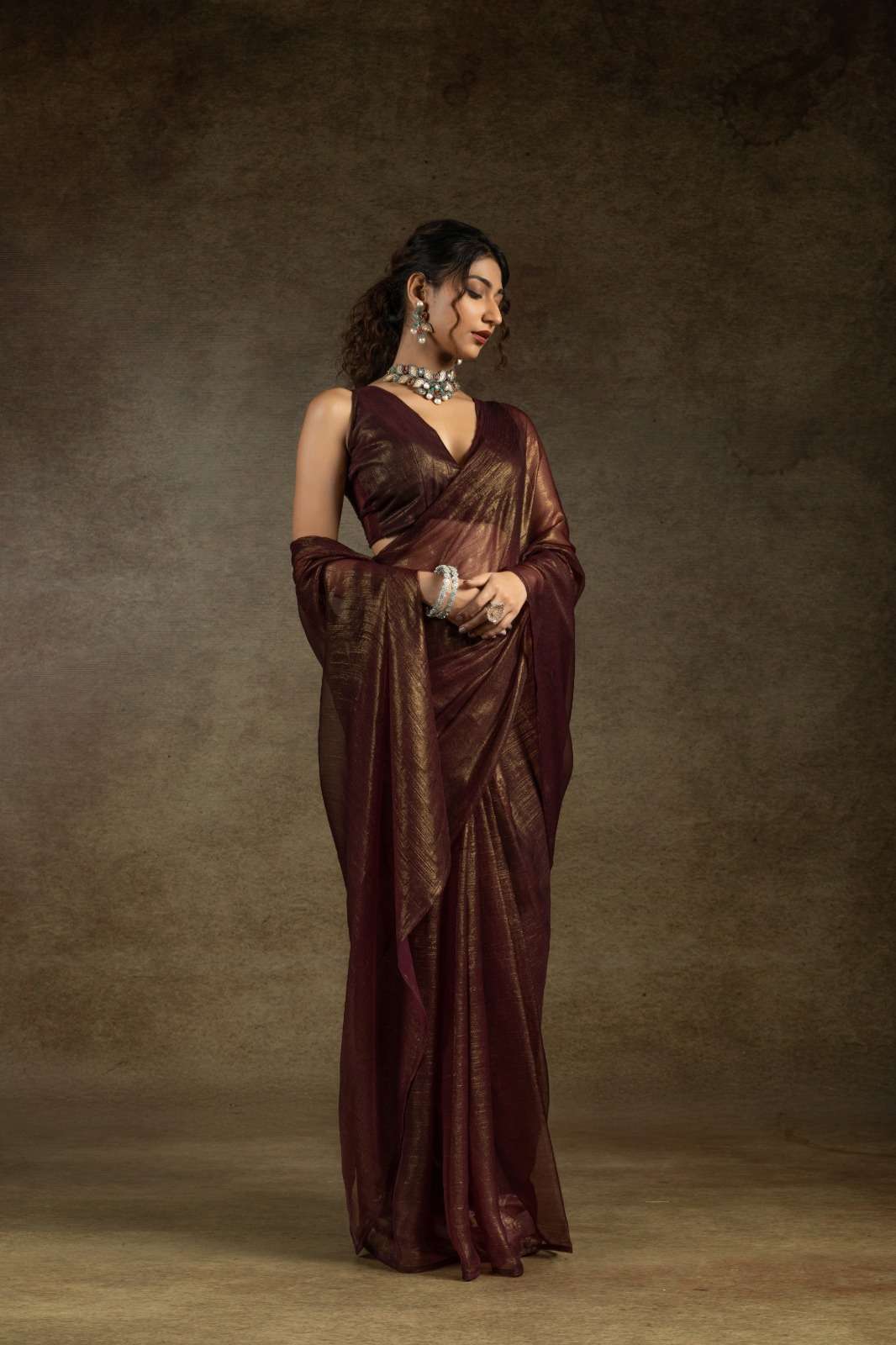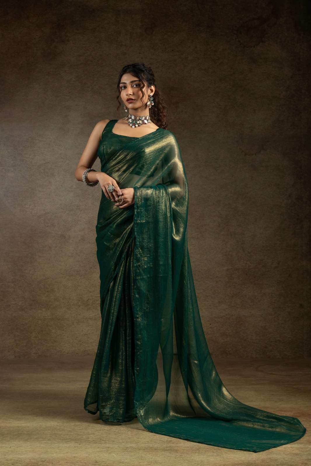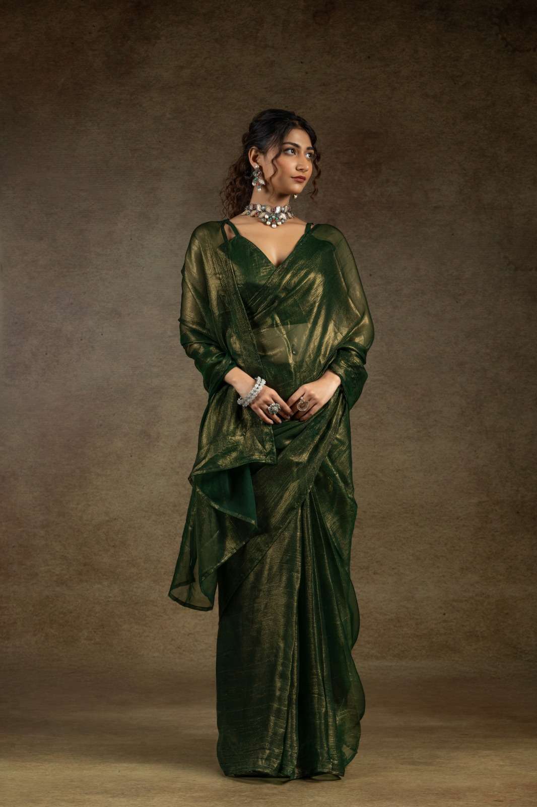 *Saree Fabric : Satin Chiffon Gold(Readymade)*