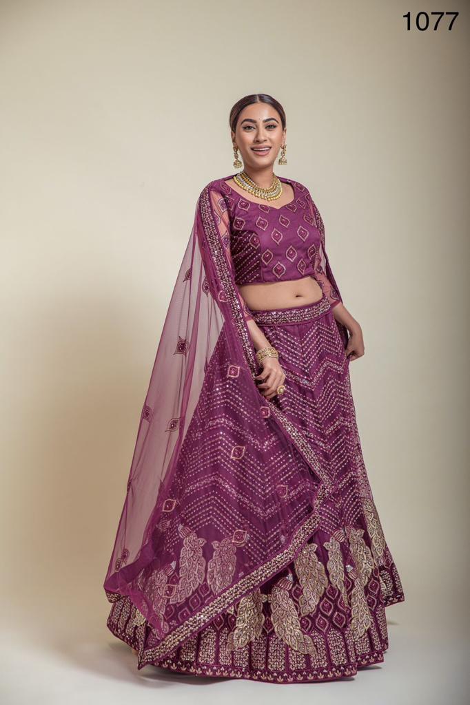 1077 Purple Color Designer Embroidered Sequins Lehengacholi