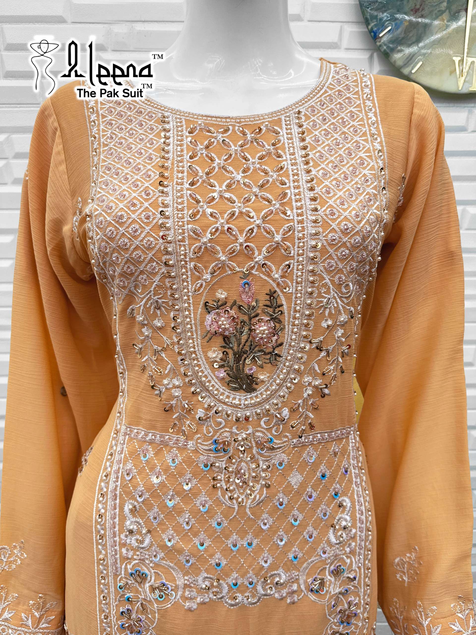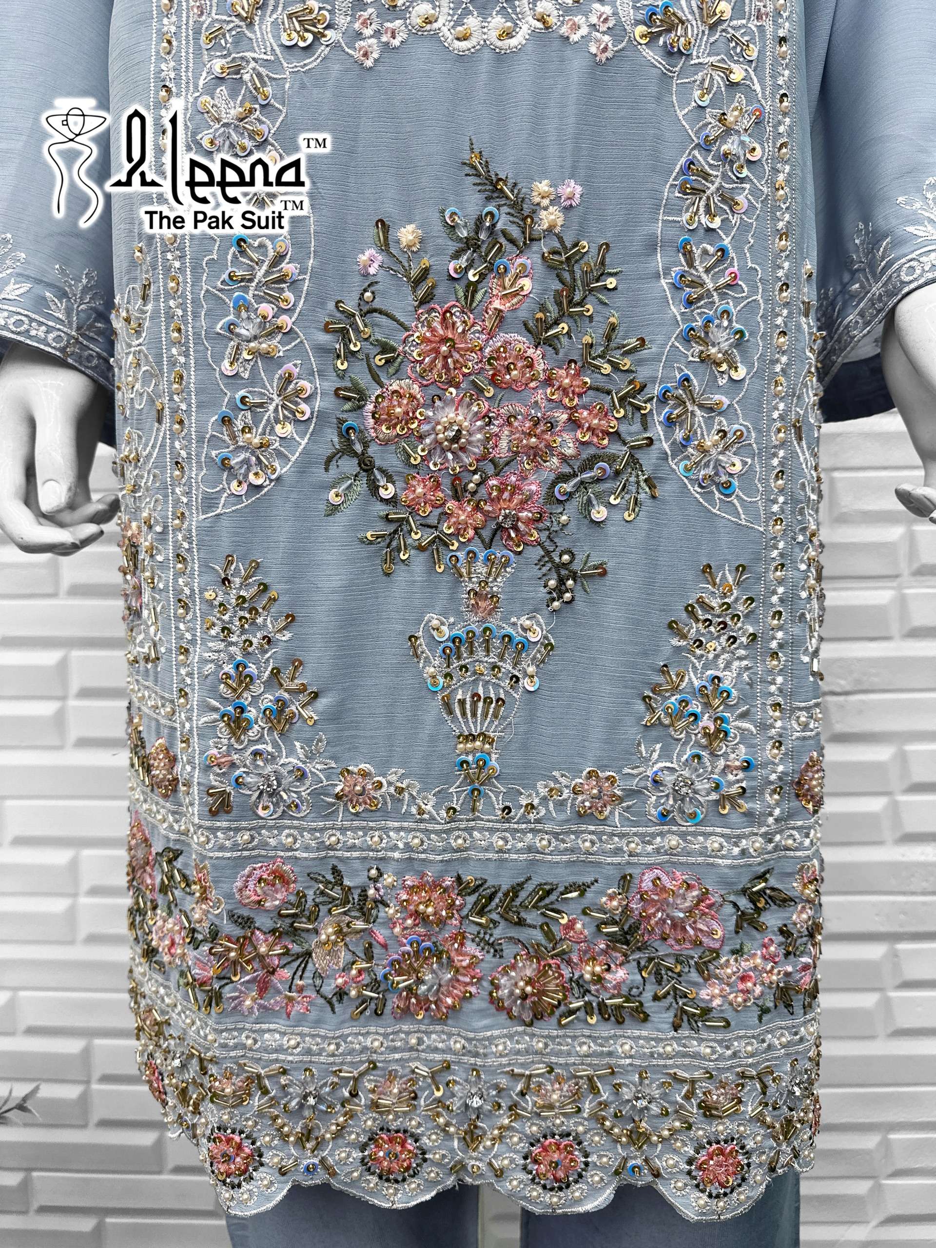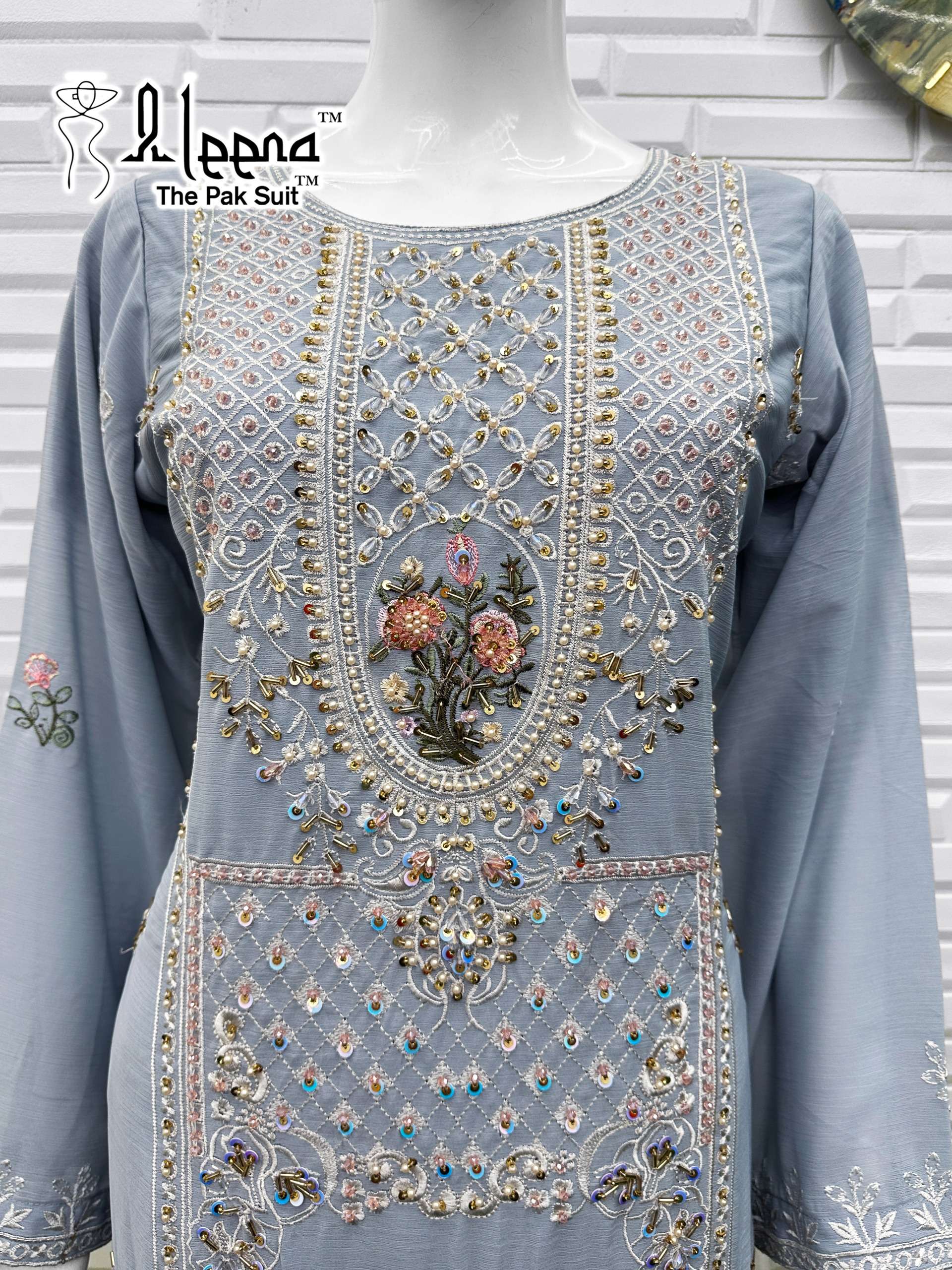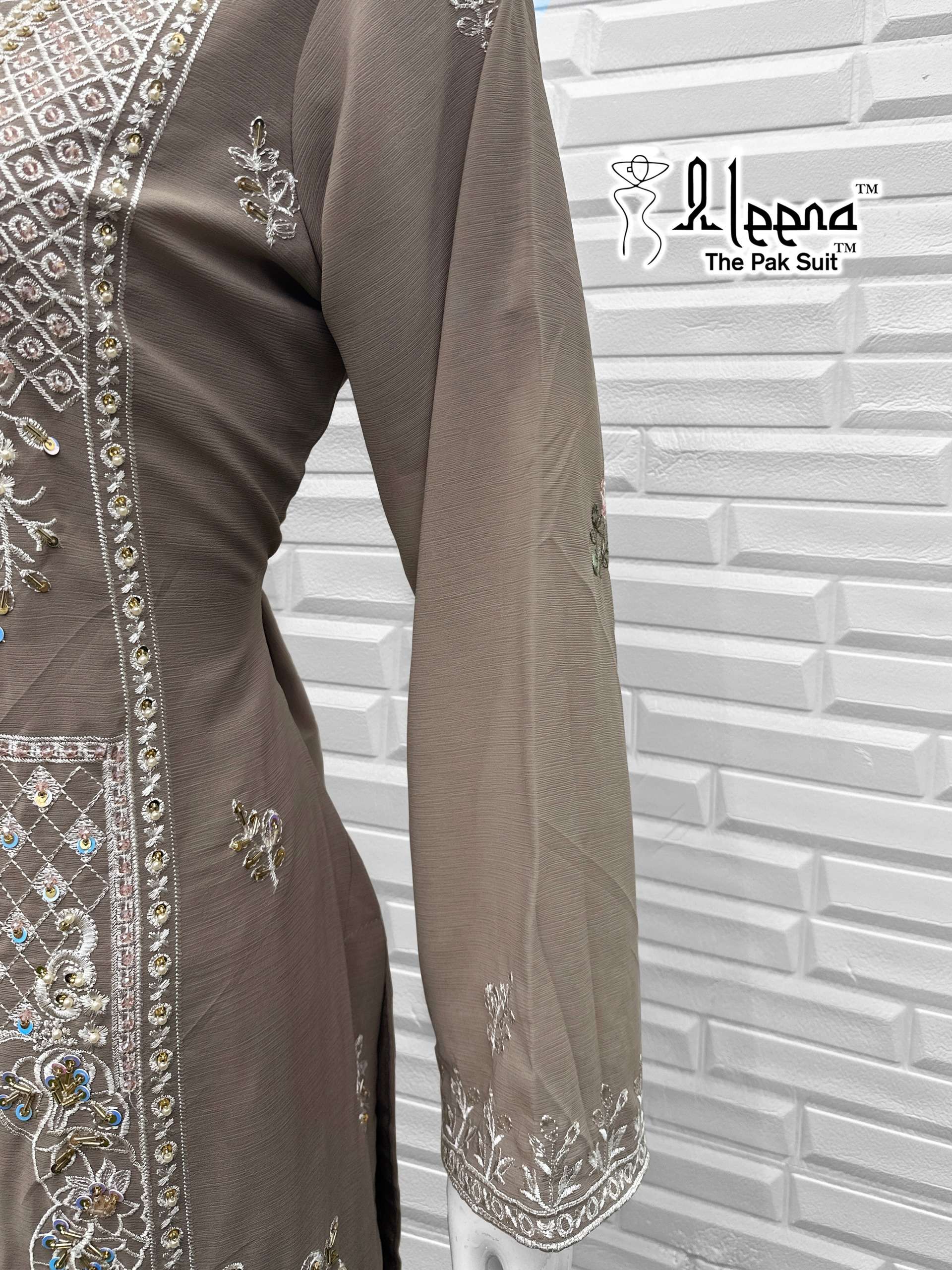 (#-1142) ➖➖➖➖➖➖➖ ✨ by ALEENA®️ ✨ ➖➖➖➖➖➖➖➖ ❤️ Description❤️ 〰〰〰〰〰〰〰 Designer Tunic Embellished with beautiful embroidery WITH SEQUINS WORK TOP & sleeves embroidery sequence with embellishment and FULL handwork,paired with Classic lining viscose pant & designer embroidery dupatta with lace.