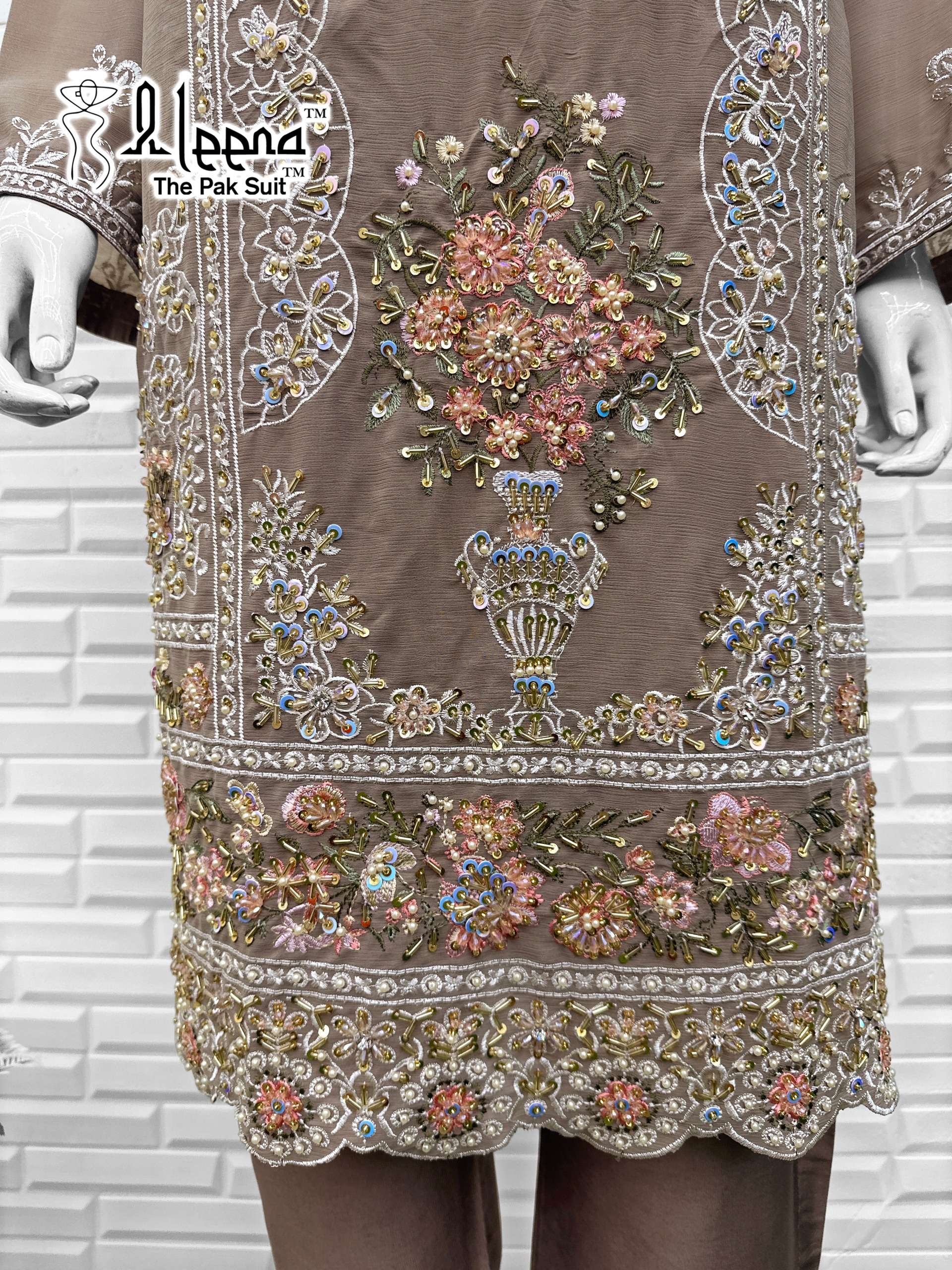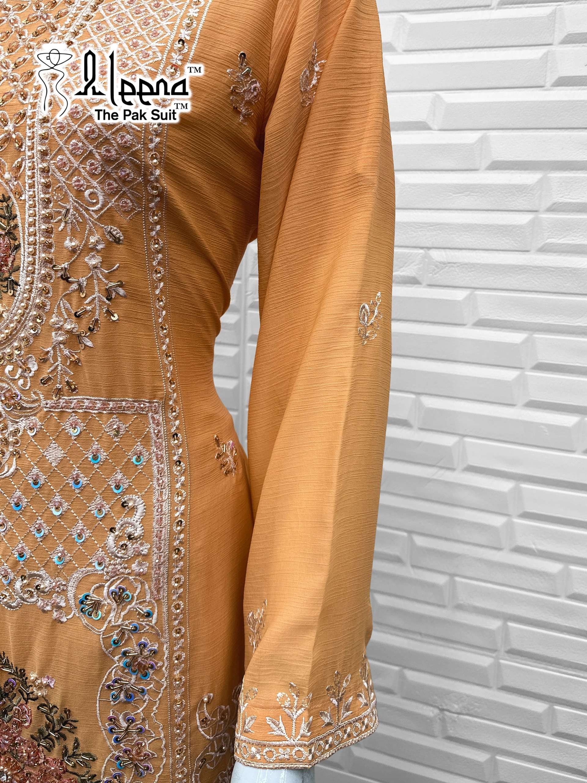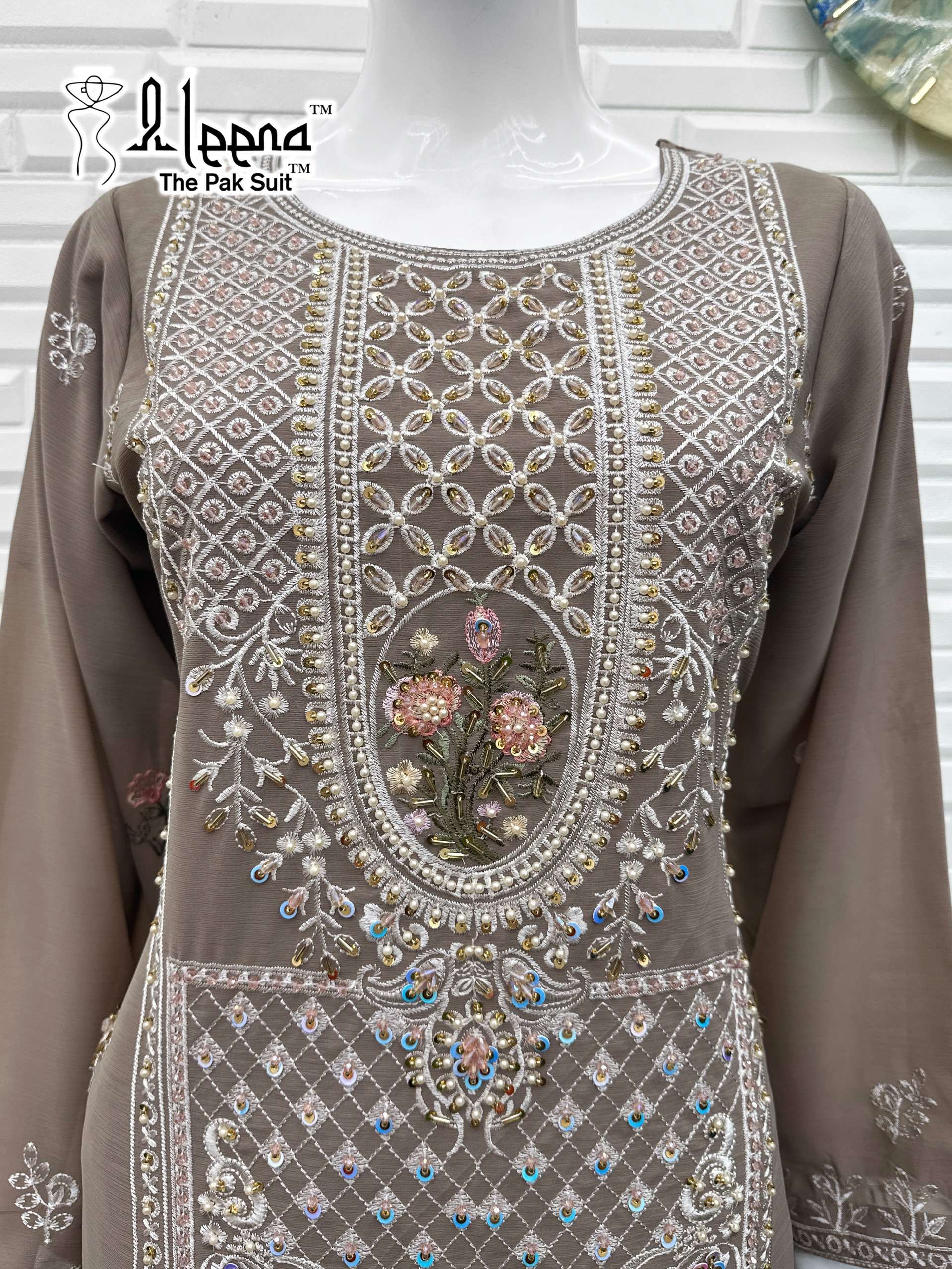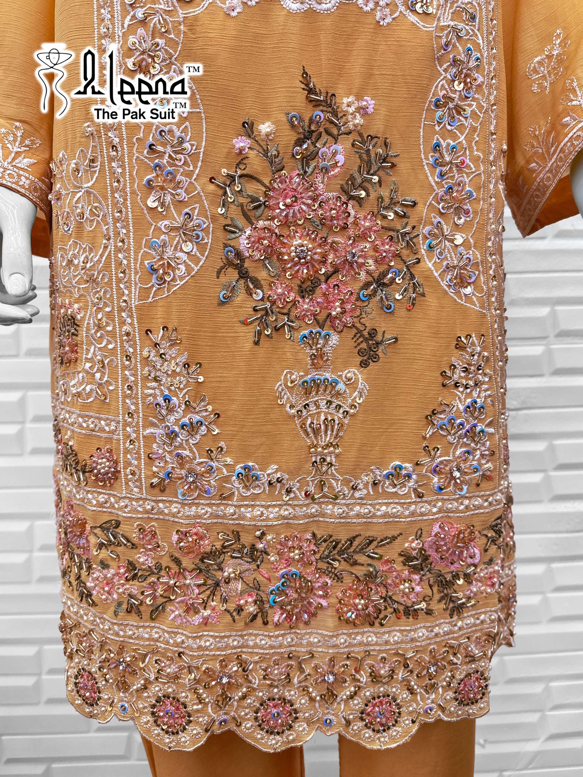 (#-1142) ➖➖➖➖➖➖➖ ✨ by ALEENA®️ ✨ ➖➖➖➖➖➖➖➖ ❤️ Description❤️ 〰〰〰〰〰〰〰 Designer Tunic Embellished with beautiful embroidery WITH SEQUINS WORK TOP & sleeves embroidery sequence with embellishment and FULL handwork,paired with Classic lining viscose pant & designer embroidery dupatta with lace.