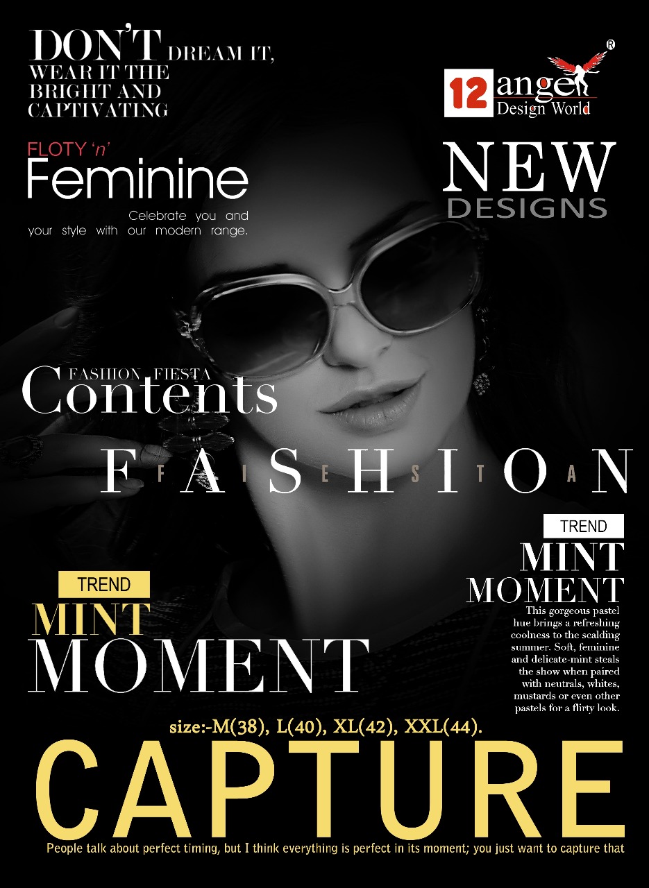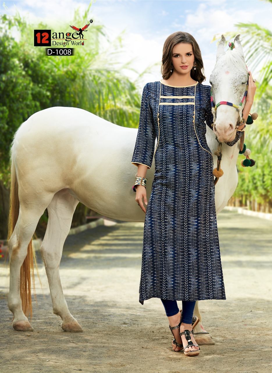 12Angel design world, Presents, summer collection long Kurti C A T A L O G U E N A M E Â?CAPTRUE T Y P E- REYON PRINT (14KG) F A B R I C Â? RAYON 14KG S I Z E Â? L, XL, XXL L E N G T H Â? 47 INCHES D E S I G N S Â? 10 PCS / SET Rate 460/- (+GST) |