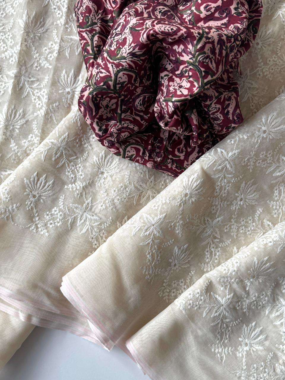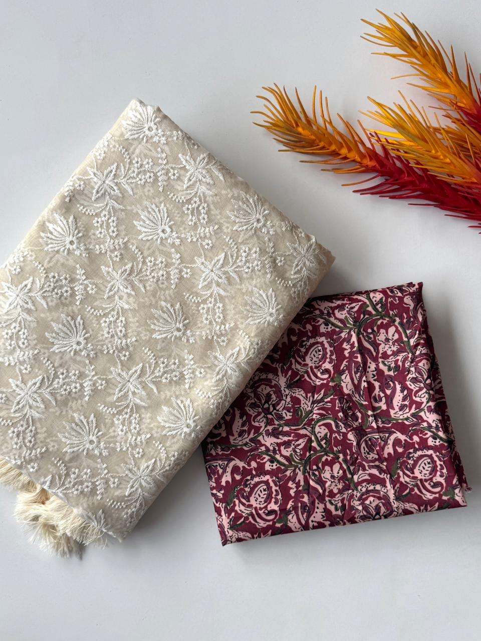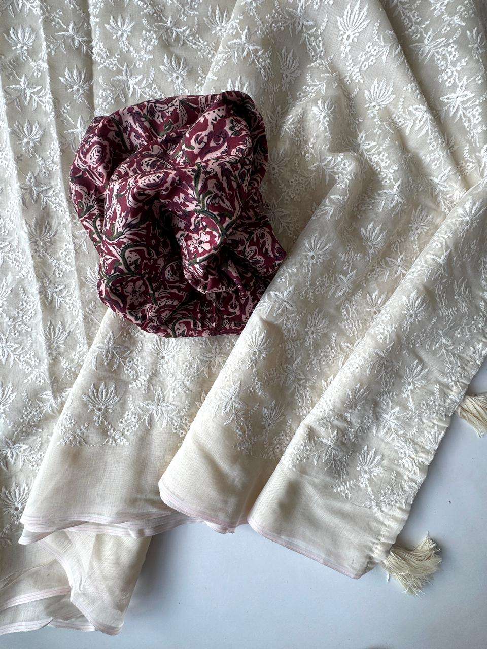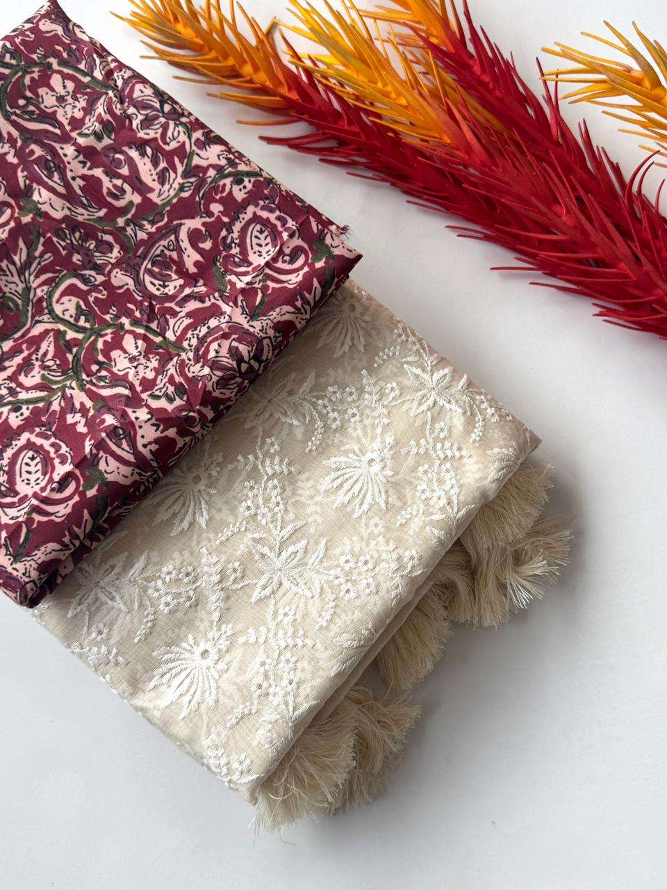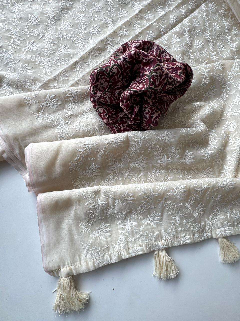 Primium Soft Chanderi Cotton With Chiken Thread Work And Heavy Tussles