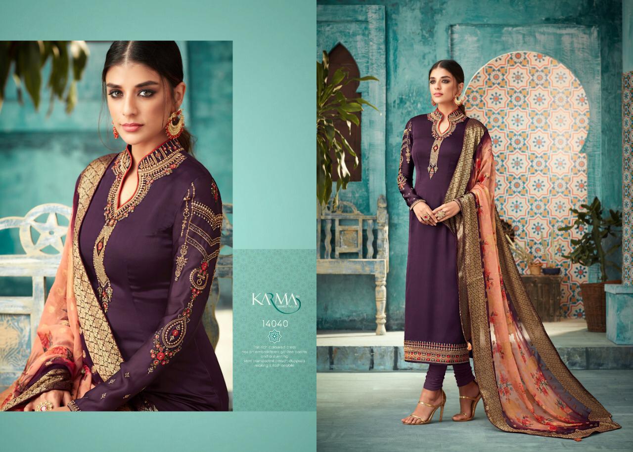 14040 Series By Karma Fancy Party Wear Satin Georgette Salwar Kameez Catlog Wholesale Dealer Surat