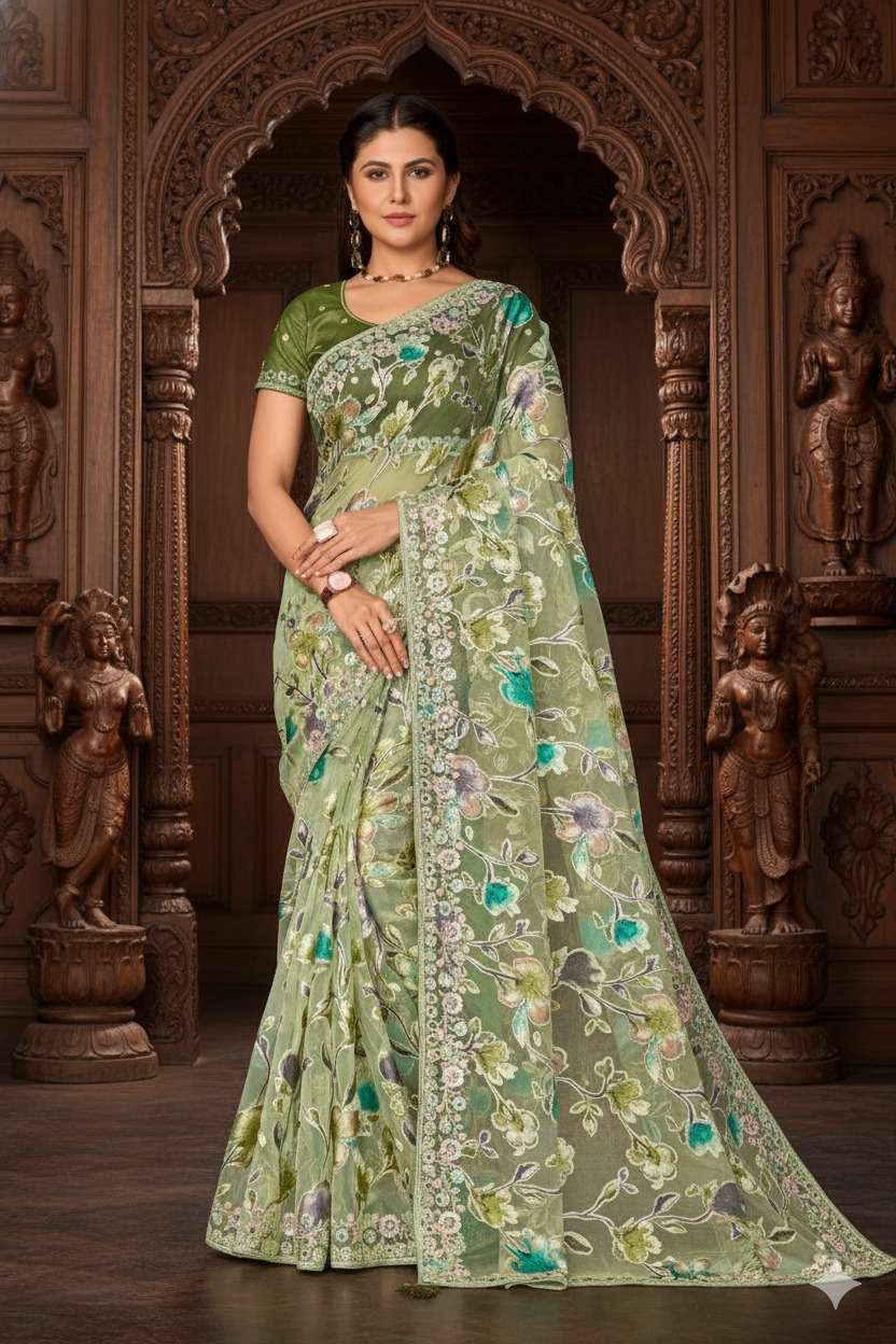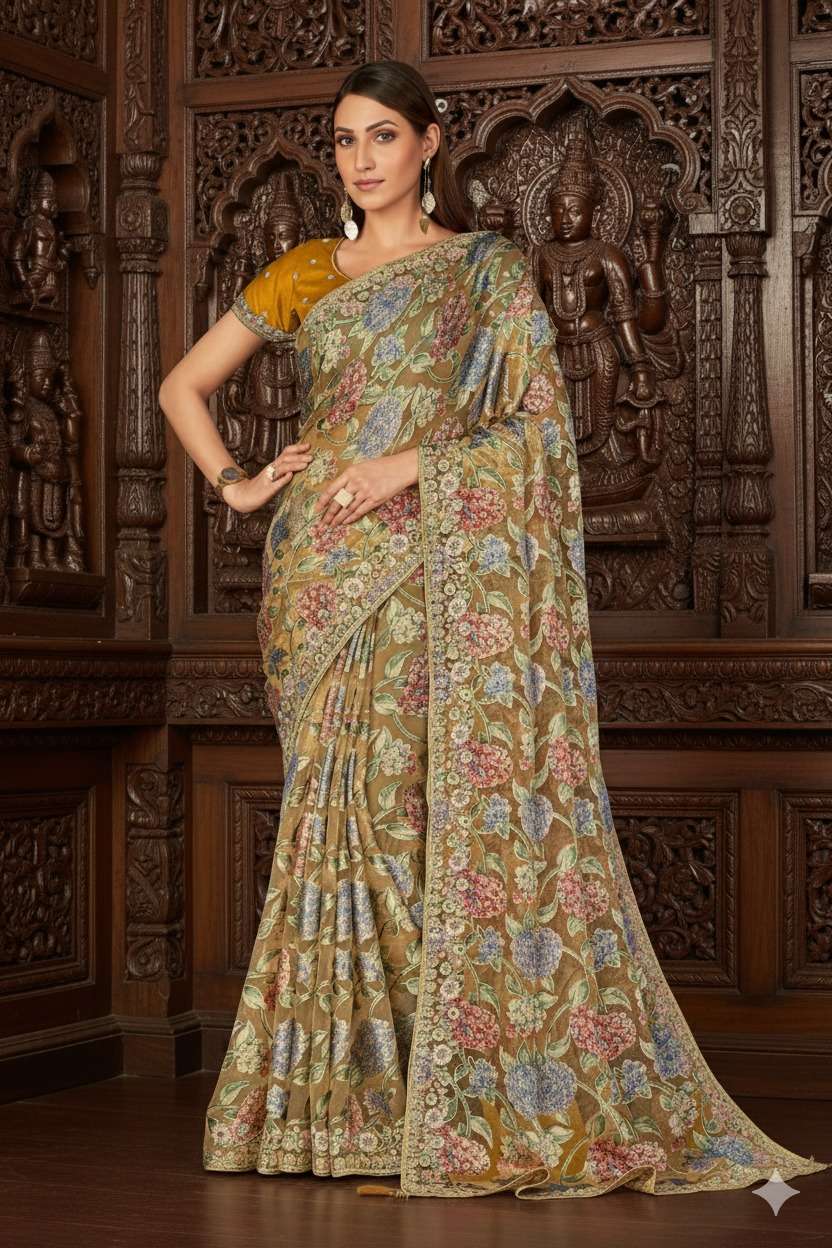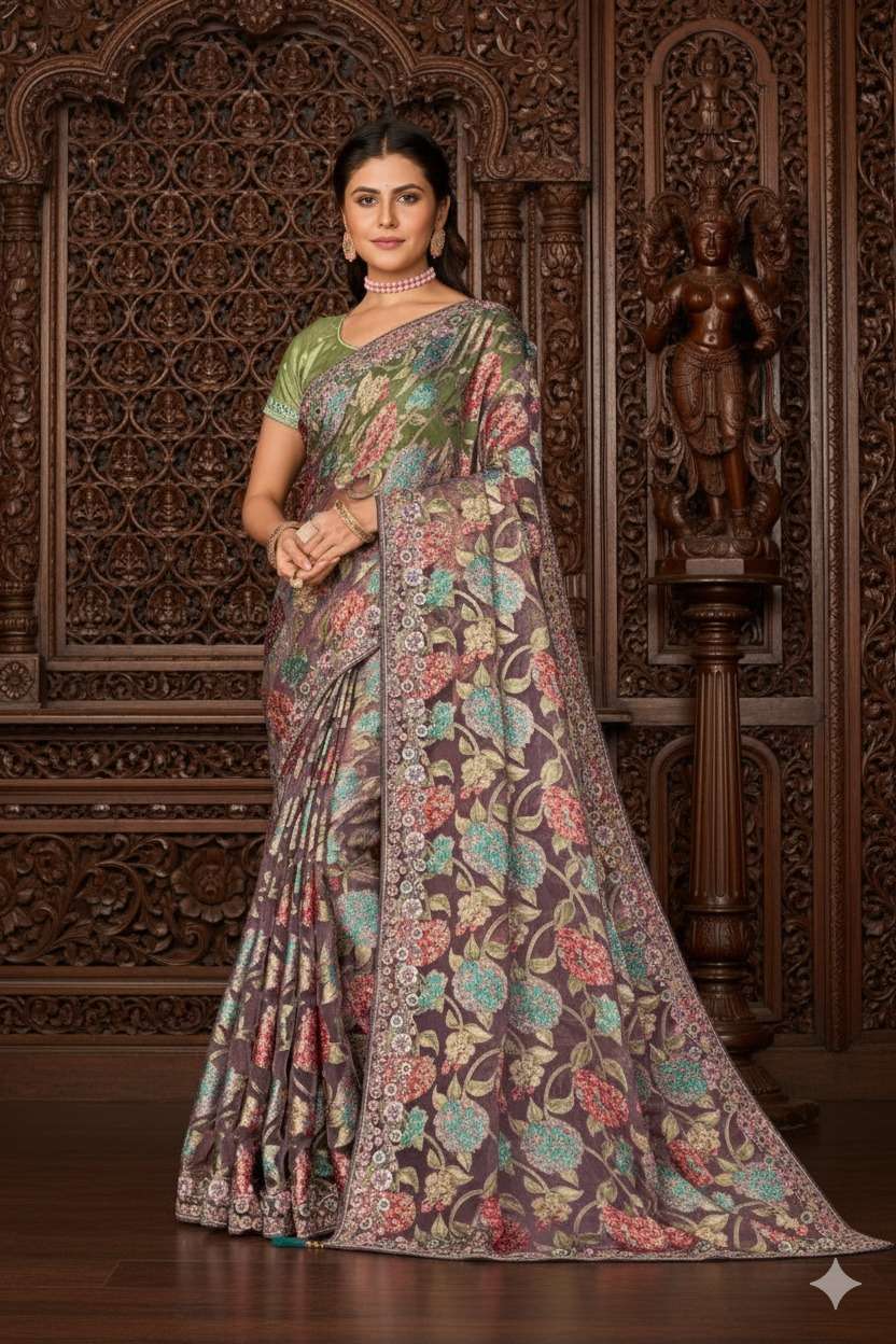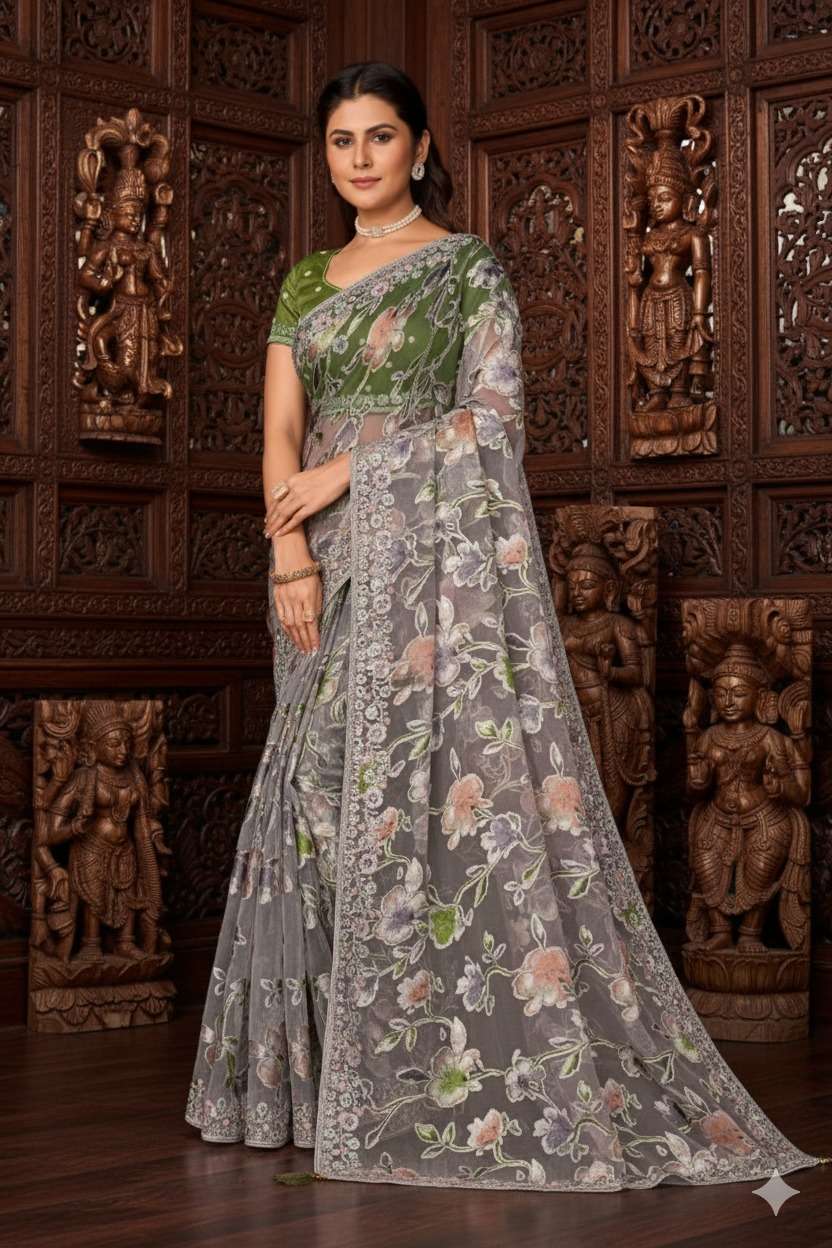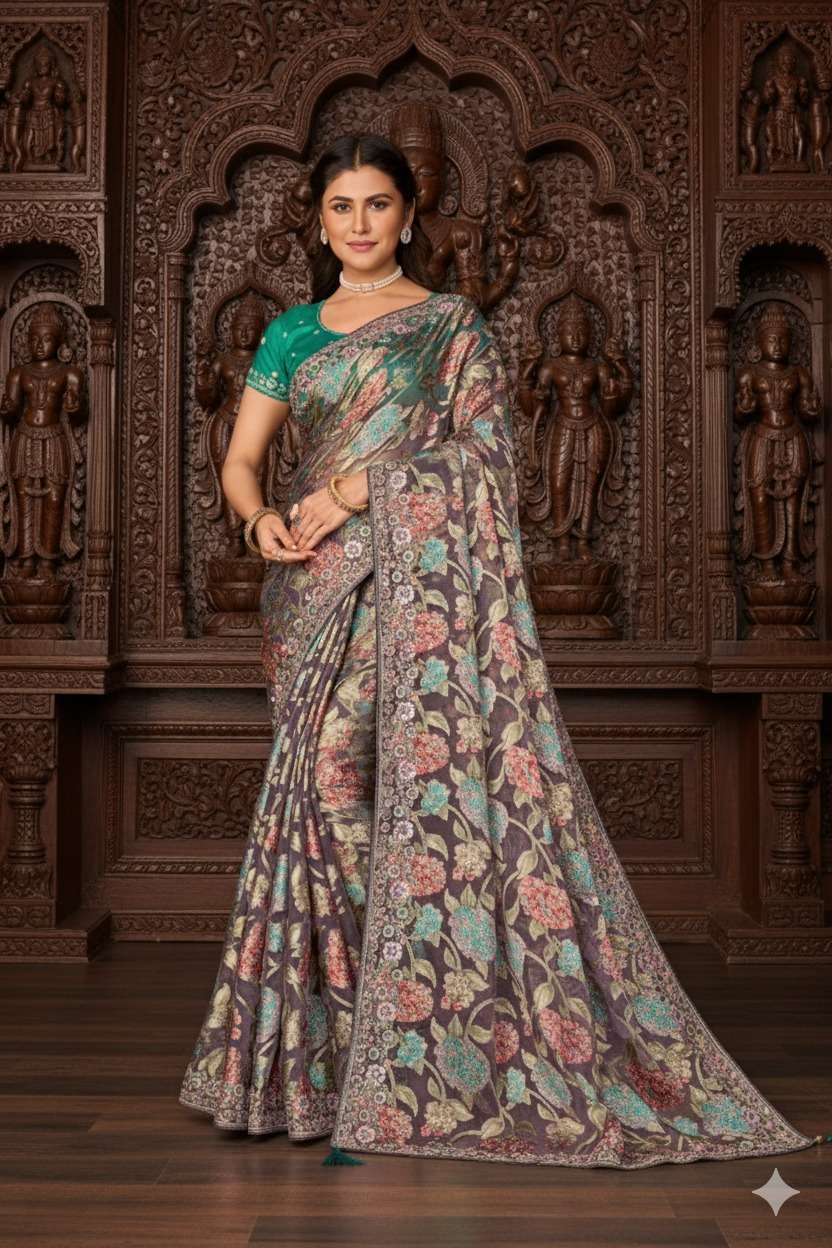 *Saree Fabric : Soft Organza With Beutifull Brasso Flower Work With embroidery,Daimond ,Sequince border Saree*