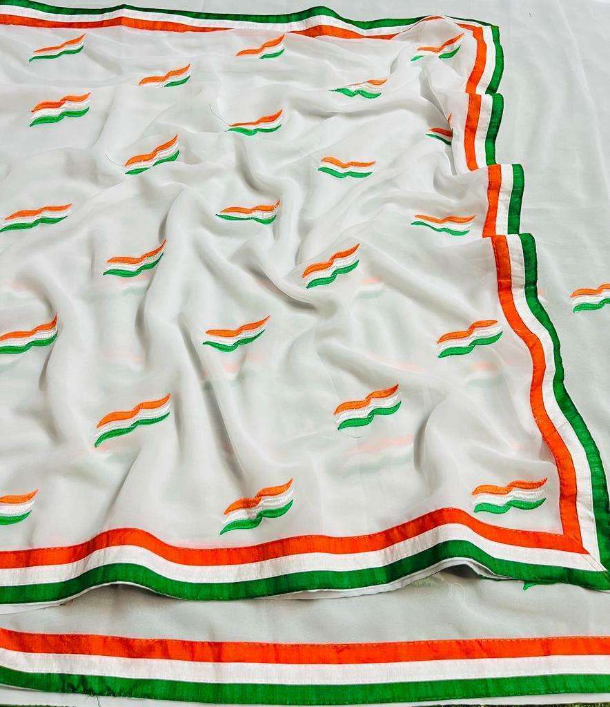*26 January Republic Day Sarees* Embroidery work sarees With blouse and pallu Rate 595+ship Fabric : 60 gram georgette |