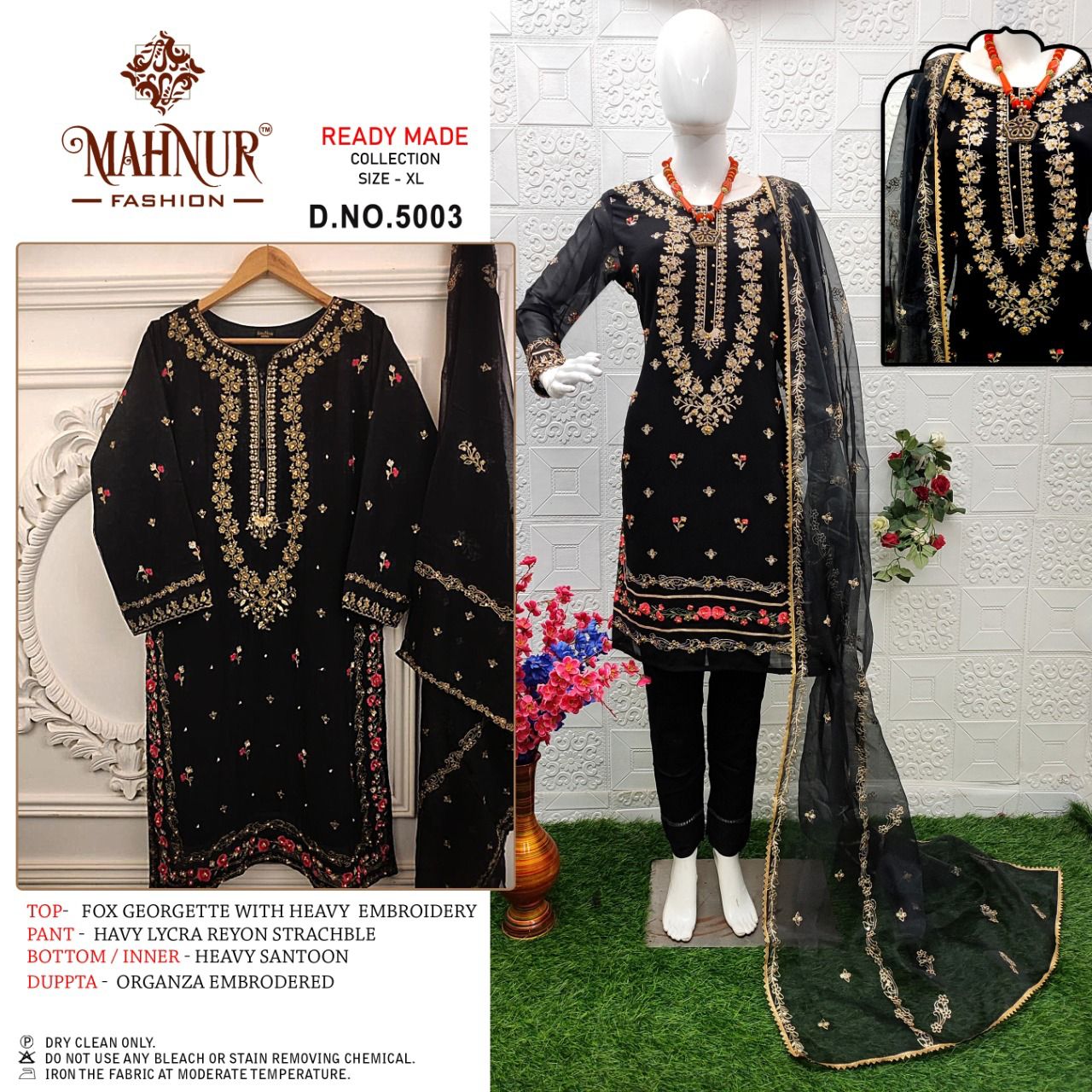 *MAHNUR FASHION* *READYMADE Collaction * *D.NO :- 5003* *Fabric Details* *Top :- Fox Georgette* *Pant :- HAVY LYCRA REYON Strachble* *Inner :- SNTOON INNER* *Duppta :- organza embrodered * *Size Chart* Top size chest :- *XL. (42)* Bottom SIZE :- *XL. (38 - 42)* *_Rate :- 1349+ GST_* *Single and Multiple Available* |