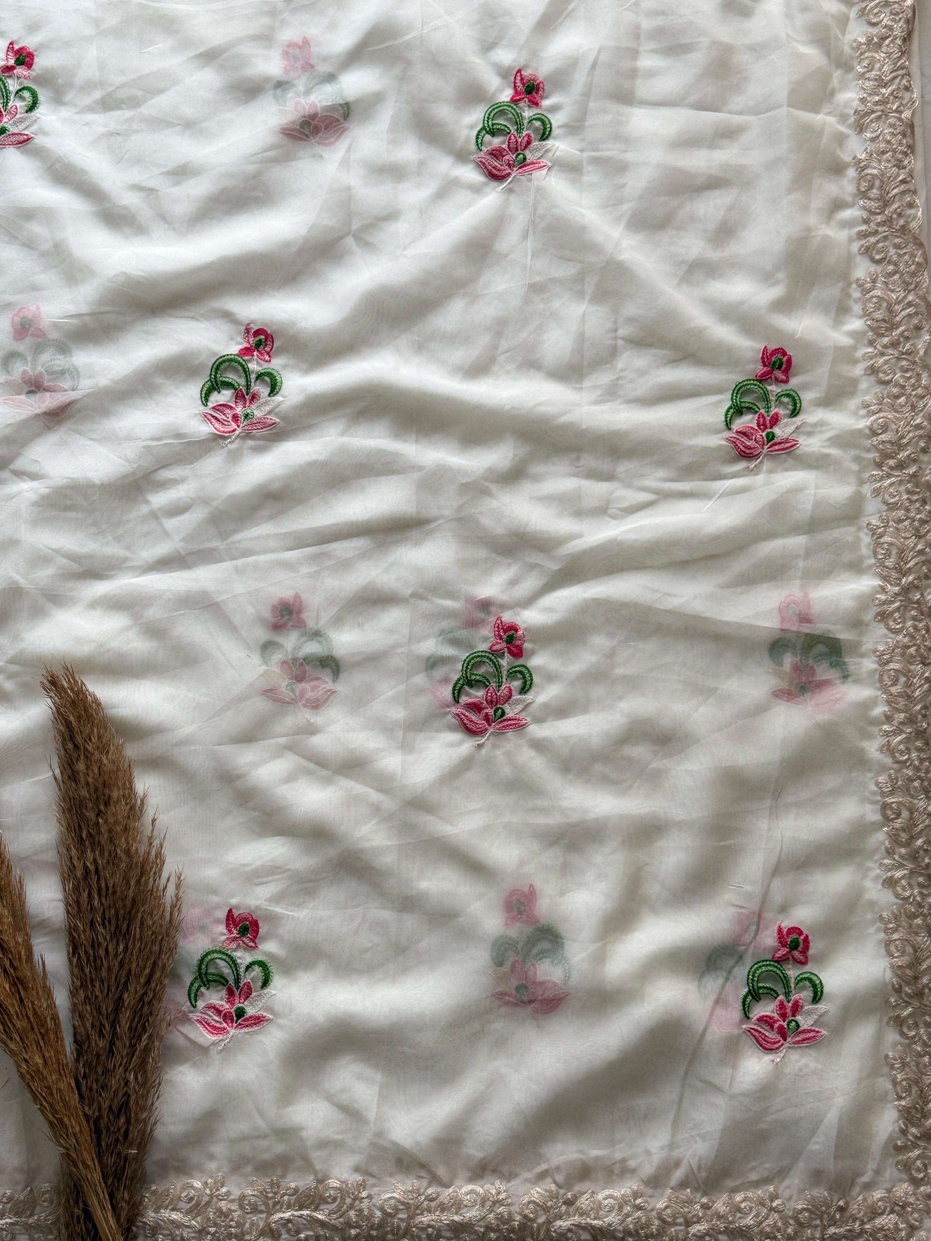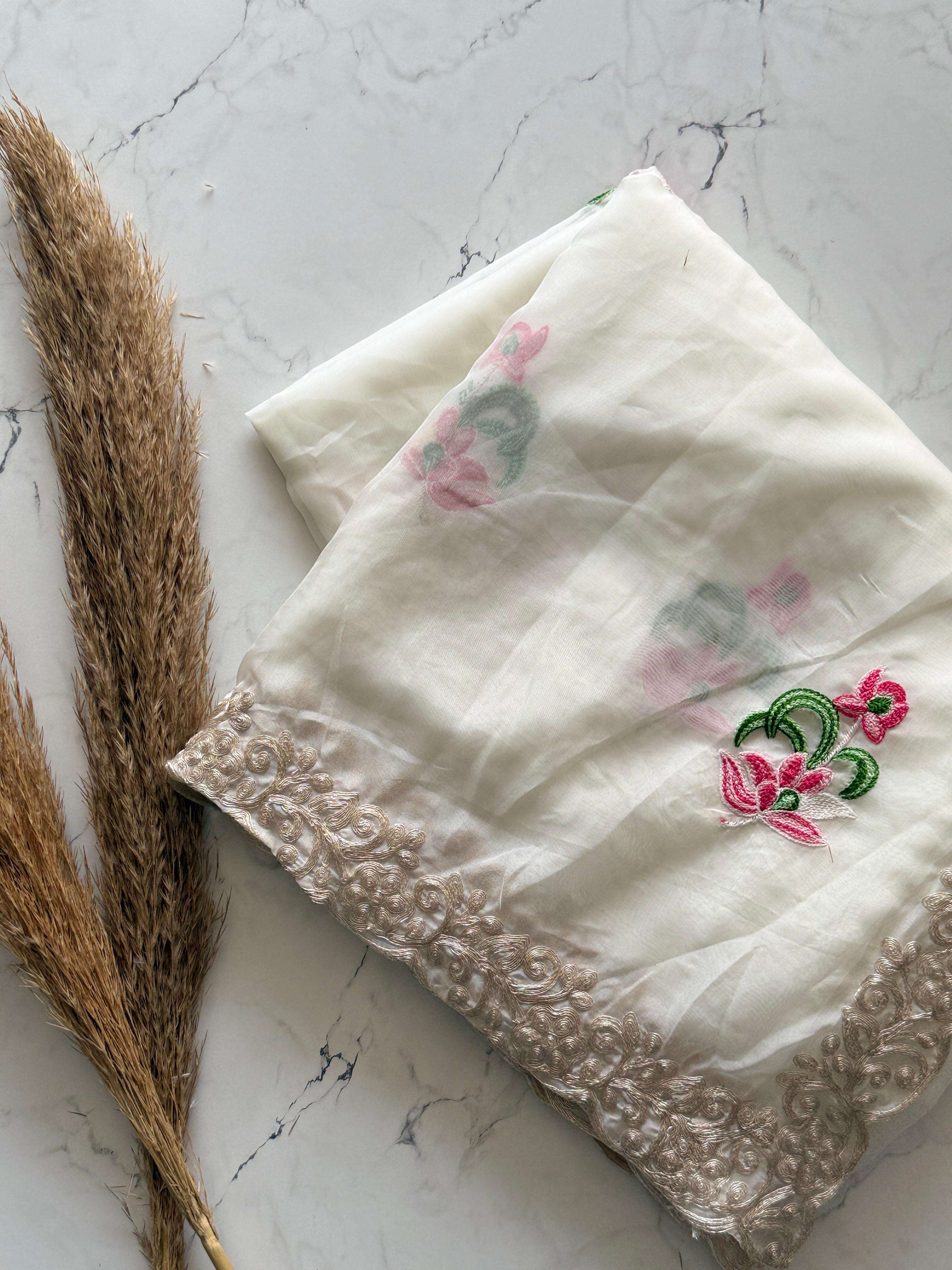 Primium Soft Tebby Silk With multy Color Thread Work And Codding scalp Border