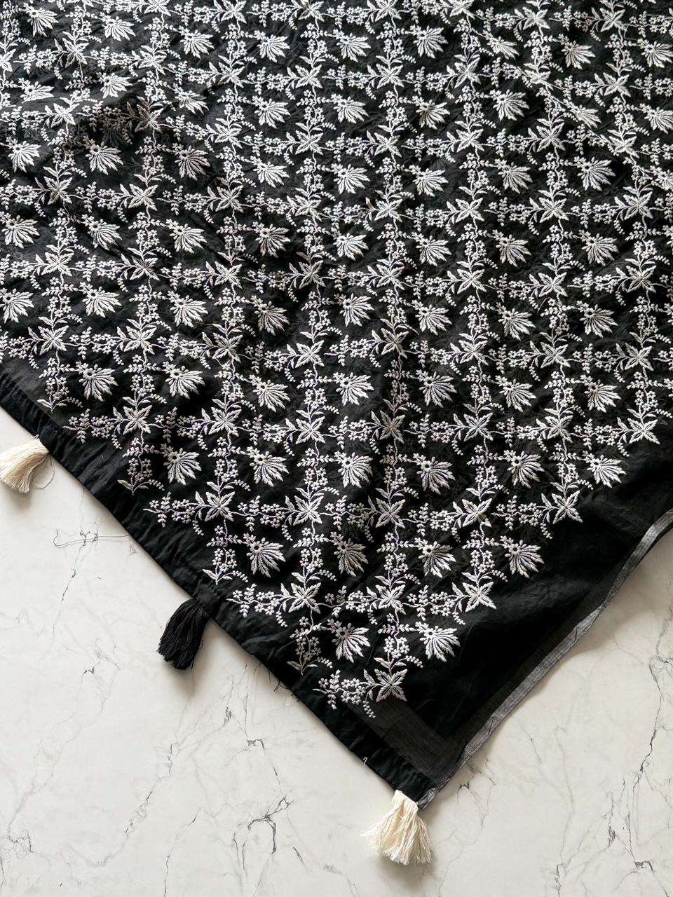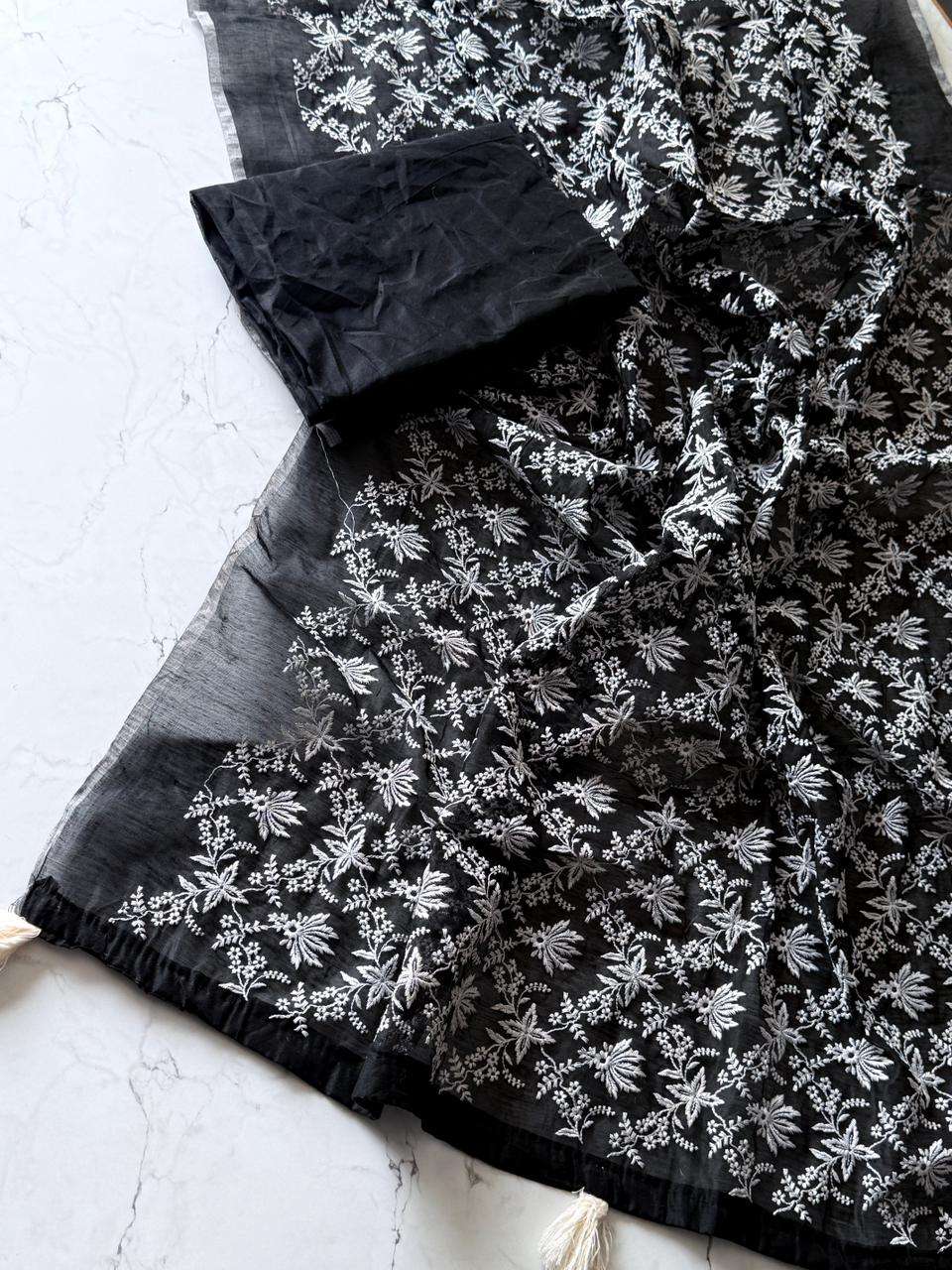 Primium Chanderi Cotton Saree With Multy Chiken Thread Work and Heavy Tussles